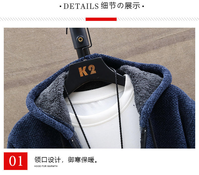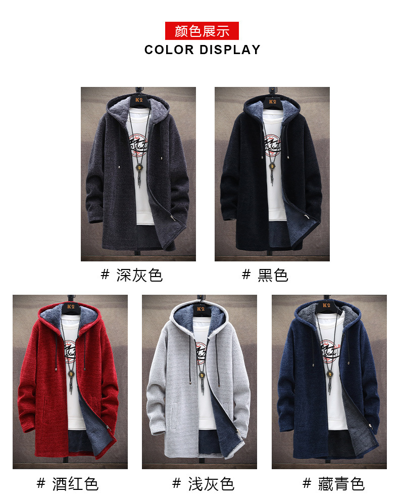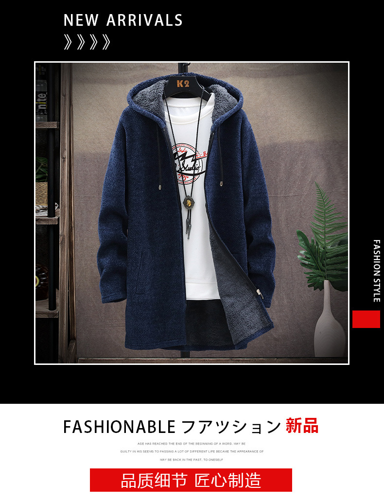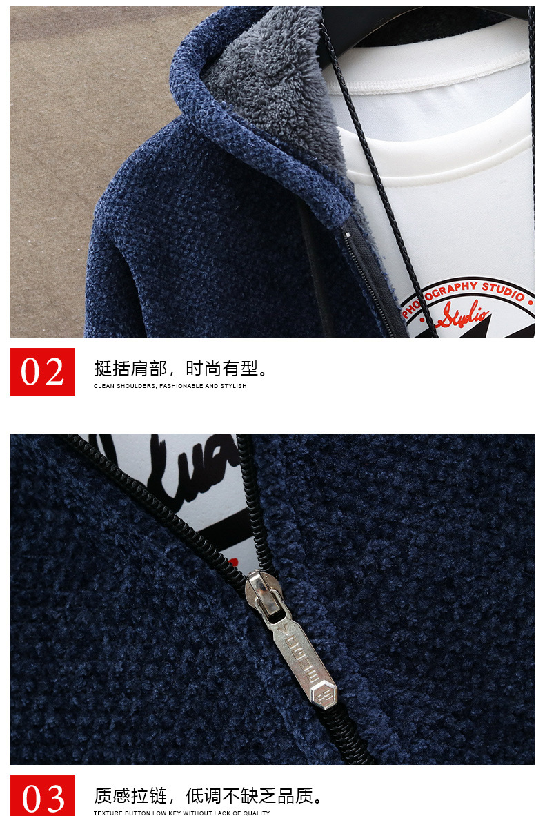 아마존 대외 무역 크로스보더 남성용 벨벳 두꺼운 셔닐 스웨터 대형 윈드 브레이커 남성용 중간 길이 후드 자켓