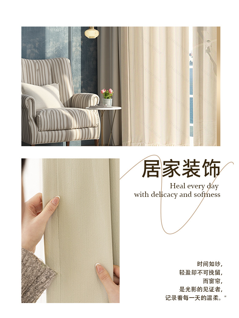 북유럽 가벼운 고급 양면 무스 면 커튼 완전 차광 및 단열 침실 및 거실 고급 완제품 맞춤형 커튼스토어 가기
