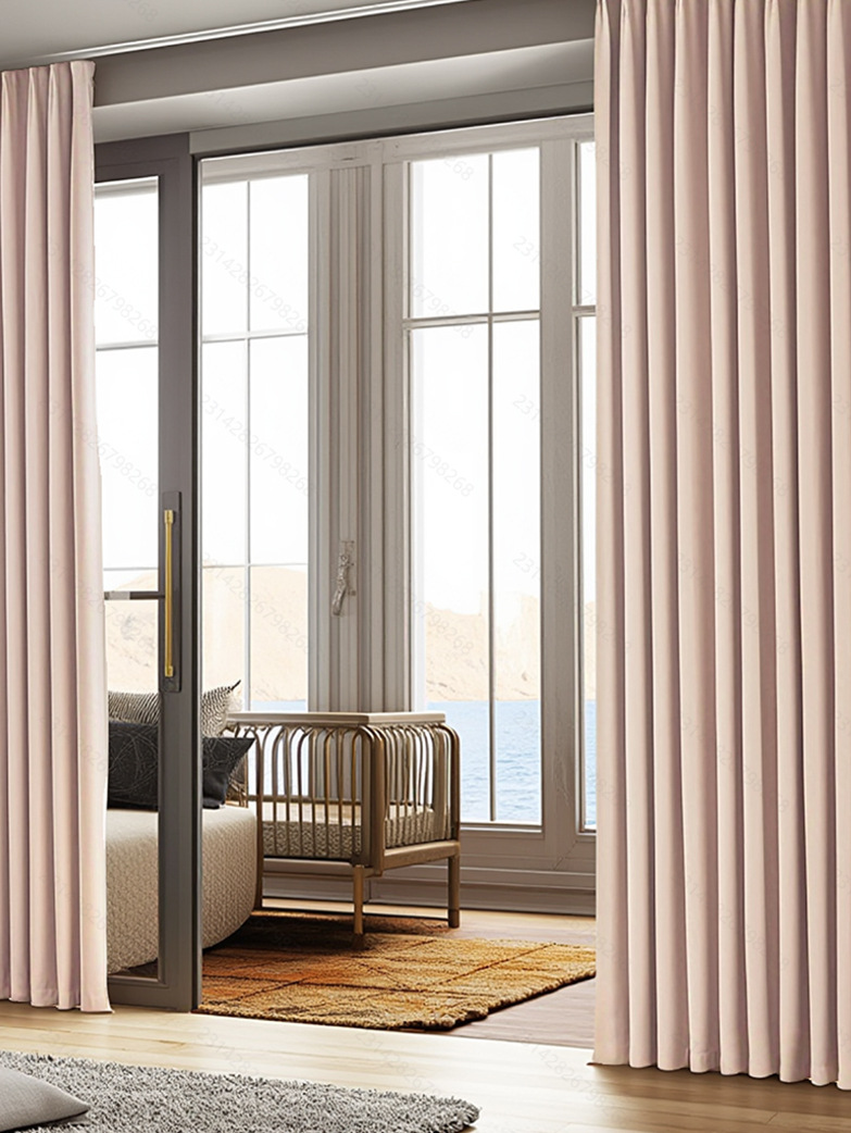 북유럽 가벼운 고급 양면 무스 면 커튼 완전 차광 및 단열 침실 및 거실 고급 완제품 맞춤형 커튼
