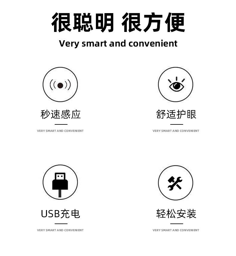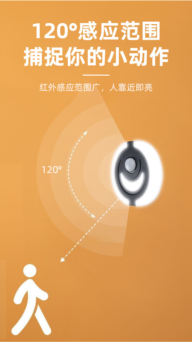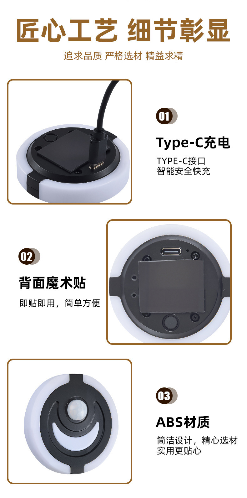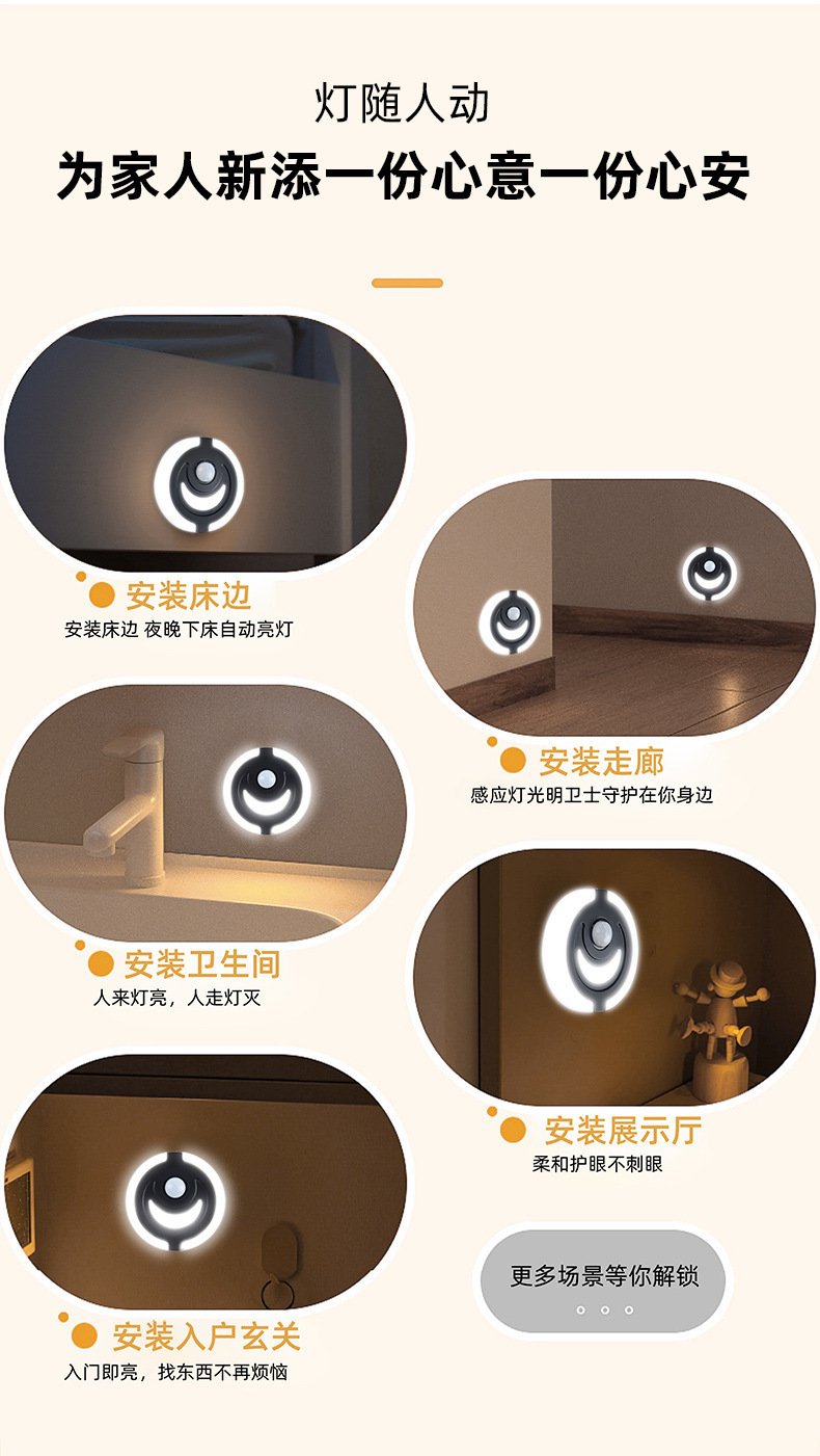 새로운 인체 센서 램프, 노인을 위한 배선이 필요 없는 자기 설치 복도 계단 통로 조명, 야간 충전식 야간 조명