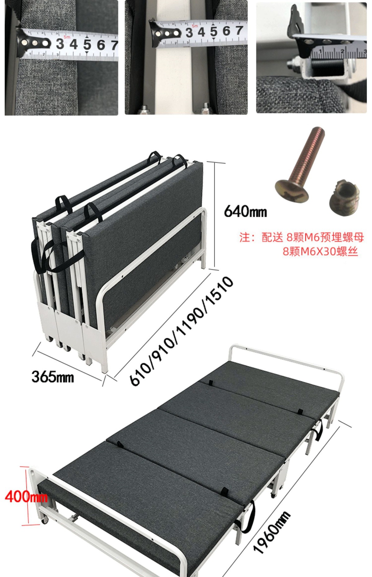 • 흰색 60cm 접이식 침대 + 캐비닛 스폰지 스타일