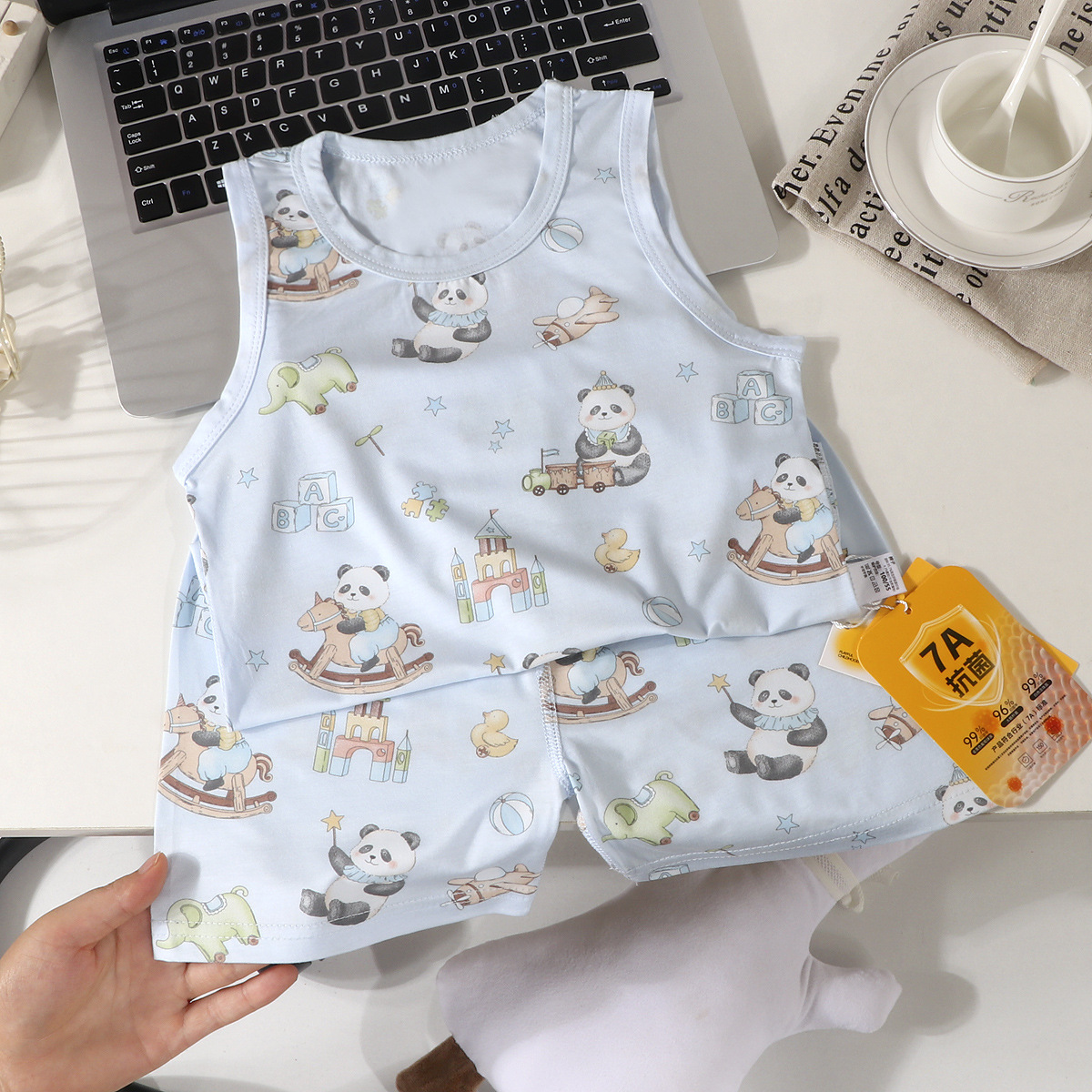 어린이 여름 가정 의류 세트 소년과 소녀 얇은 만화 잠옷 아기 조끼 반바지 민소매 에어컨 옷