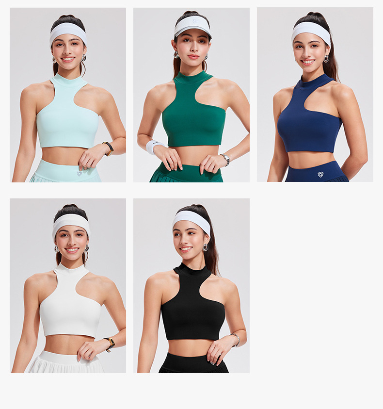 여성용 크로스보더 신상 요가탑, 불규칙한 디자인의 아름다운 등라인, 러닝, 충격방지, 야외 피트니스, 스포츠 요가탑스토어 가기