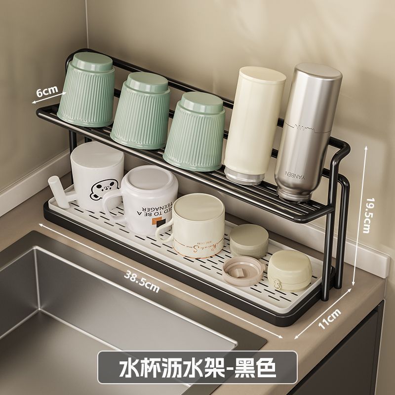 범용 주방 보관함, 계층형 컵, 보온병, 찻잔 보관함, 이중층 배수 트레이 랙, 제조업체 직접 배송스토어 가기