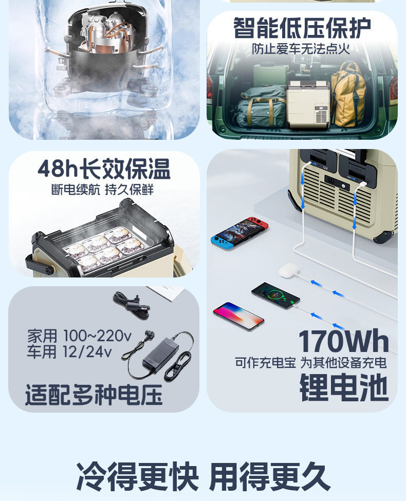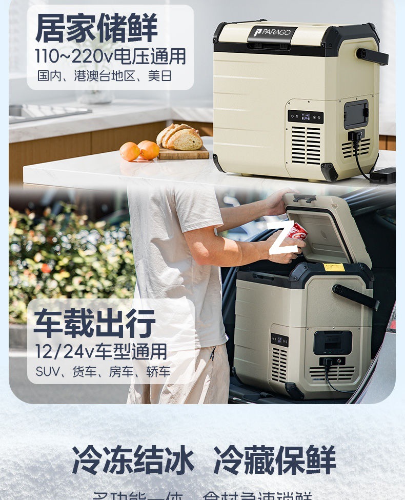 충전식 자동차 냉장고, 자동차 및 가정용 이중 목적 압축기, 냉동 및 냉장, 야외 휴대용 배터리 냉난방 냉장고