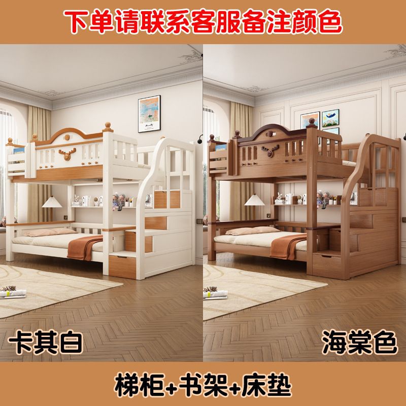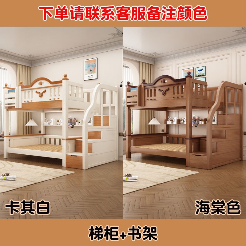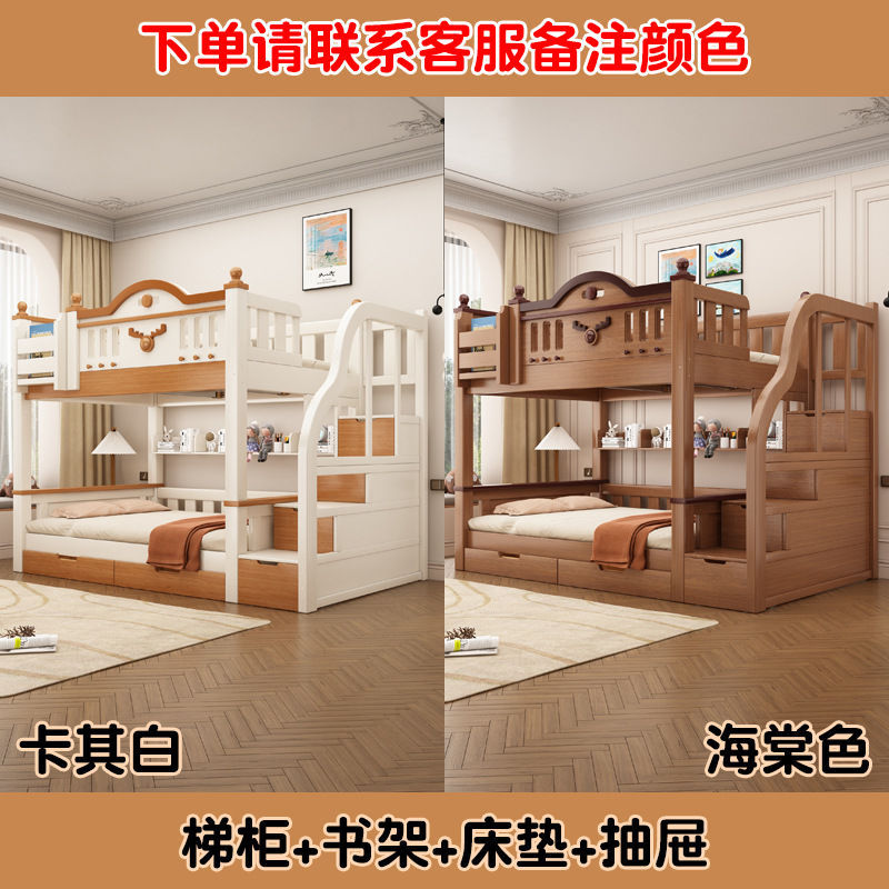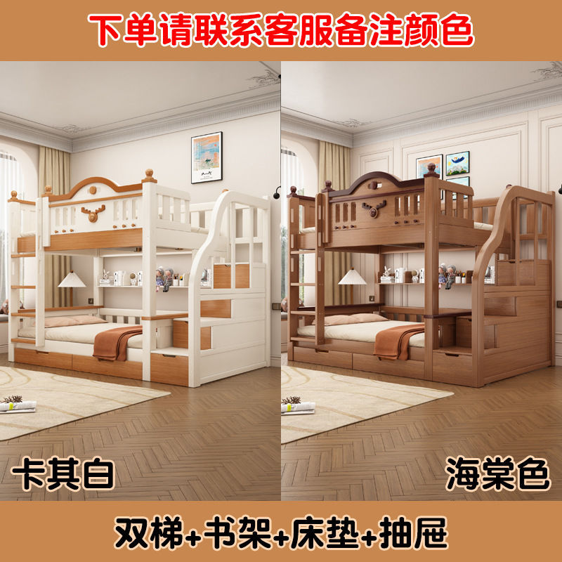 Jingguan 단단한 나무 두꺼운 이층 침대 작은 아파트 어린이 이층 침대 가정용 다기능 높고 낮은 침대 기숙사 이층 침대