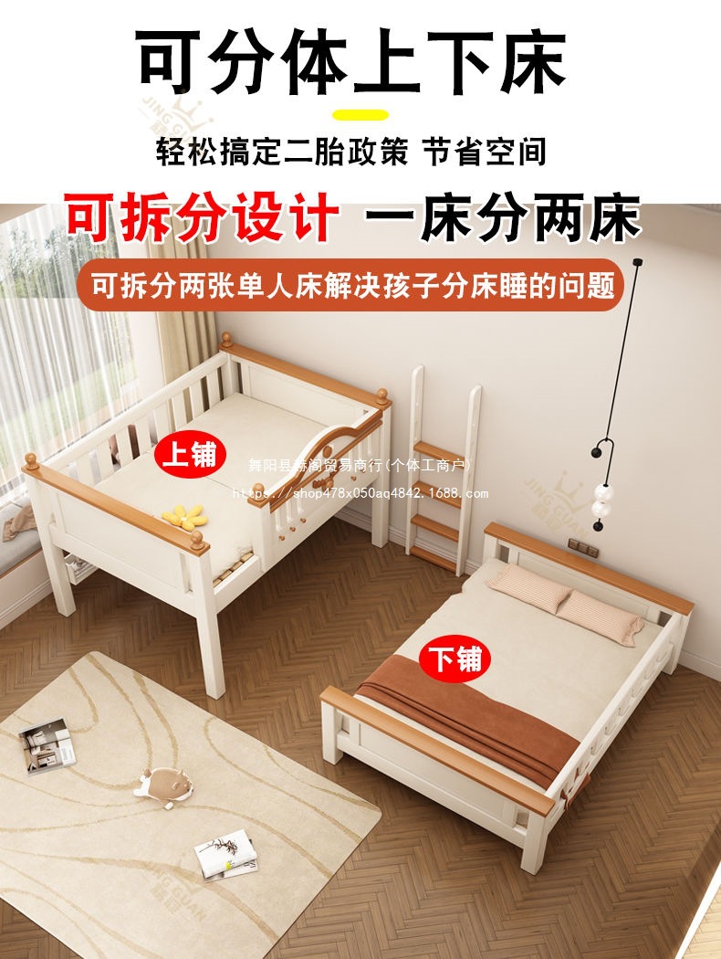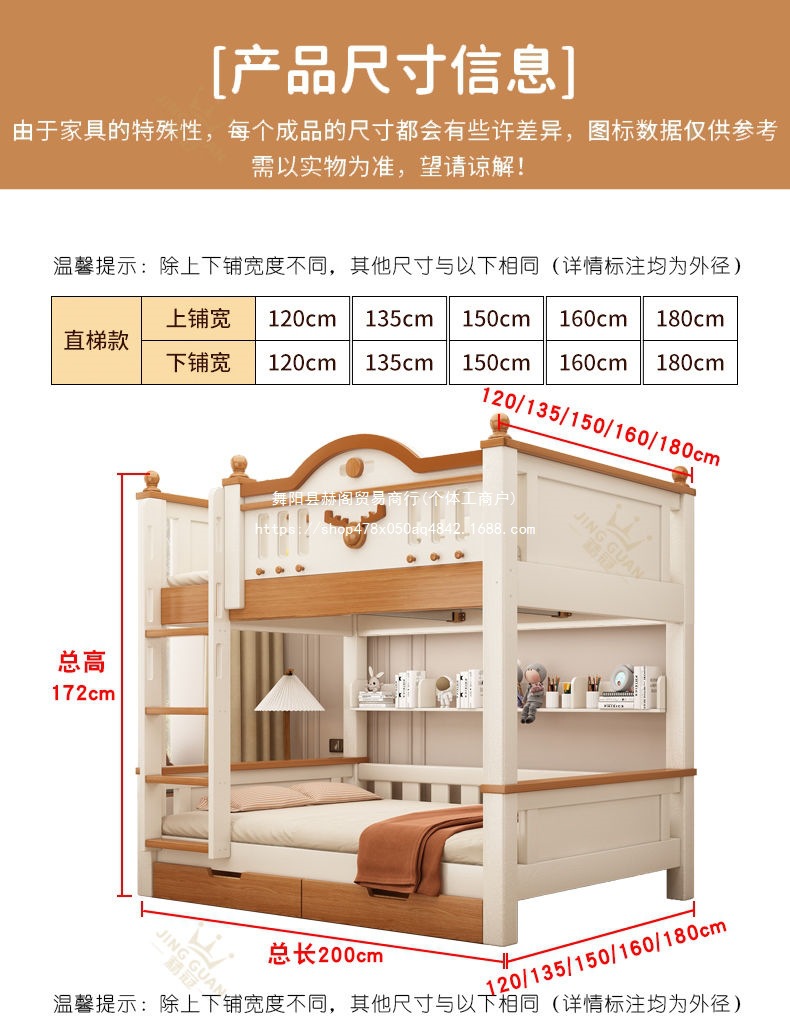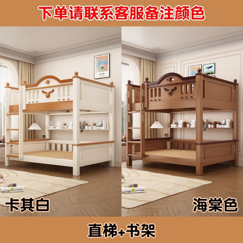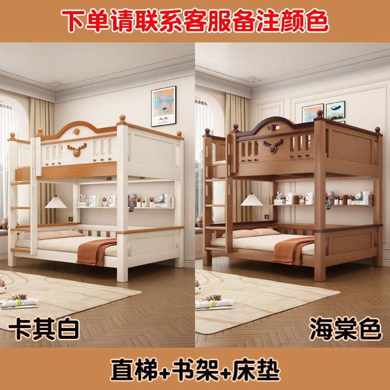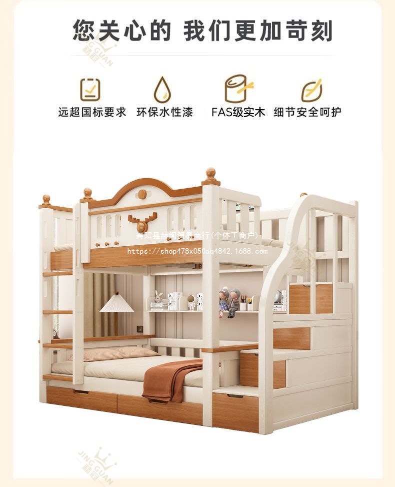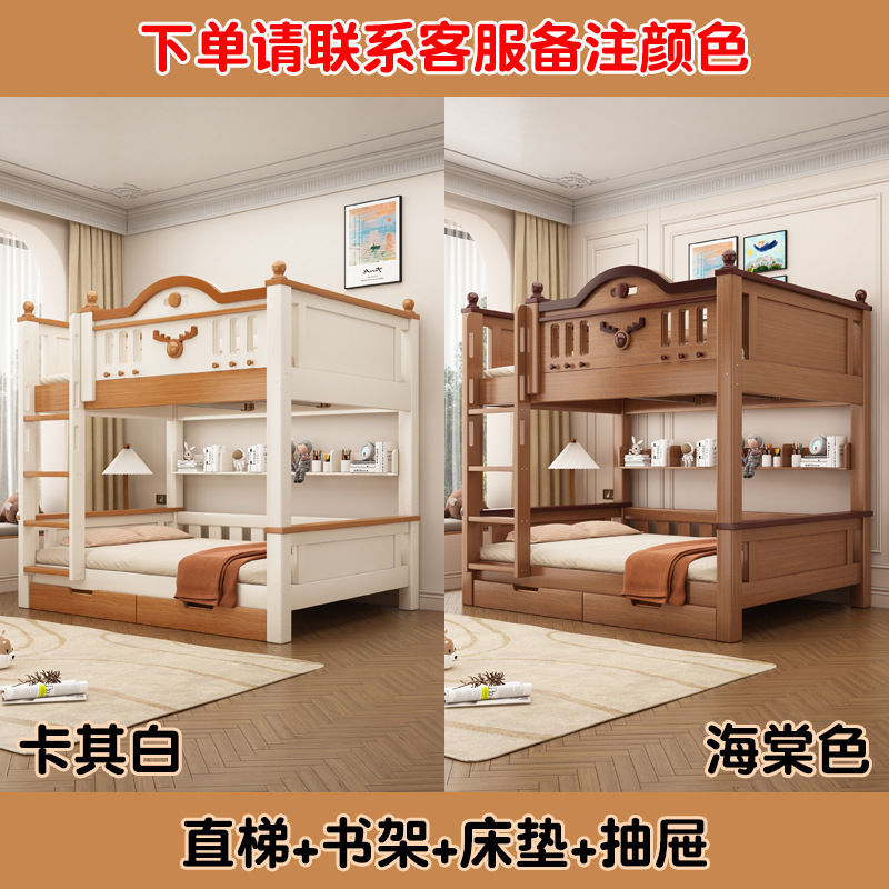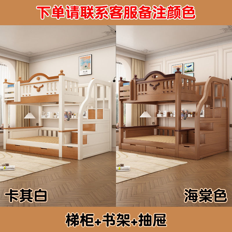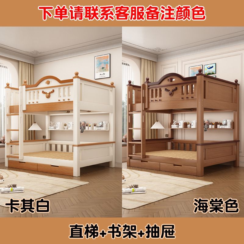 Jingguan 단단한 나무 두꺼운 이층 침대 작은 아파트 어린이 이층 침대 가정용 다기능 높고 낮은 침대 기숙사 이층 침대스토어 가기