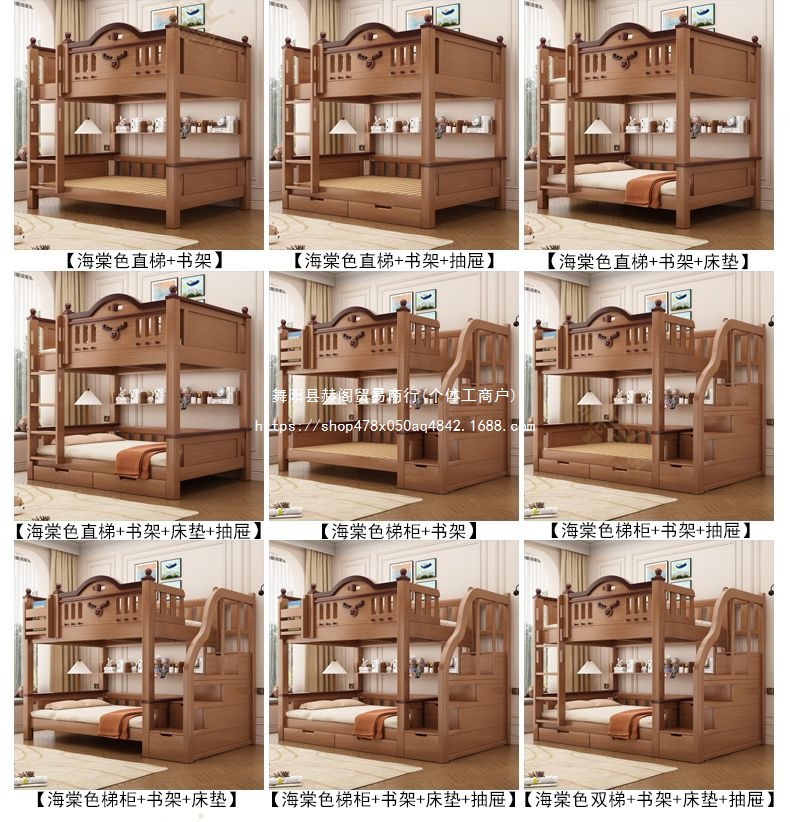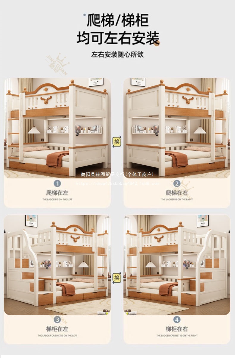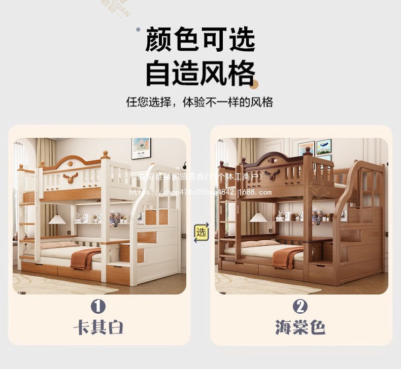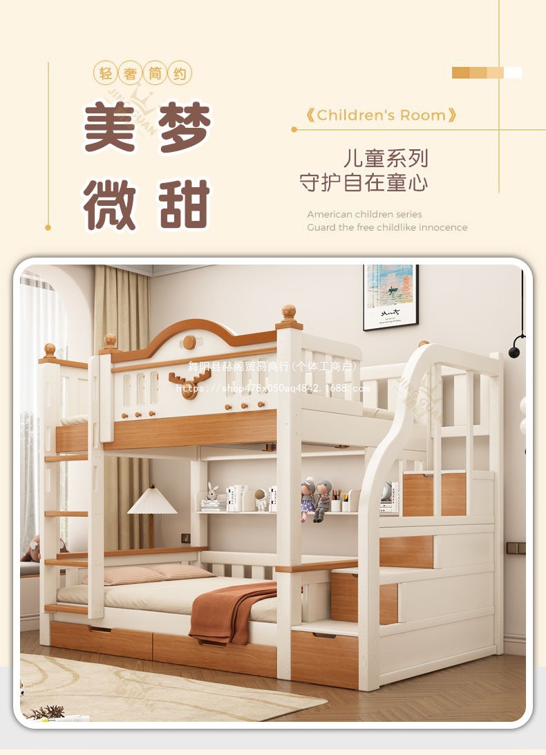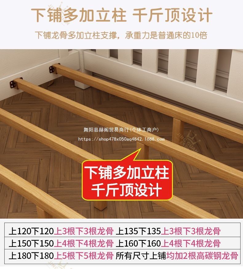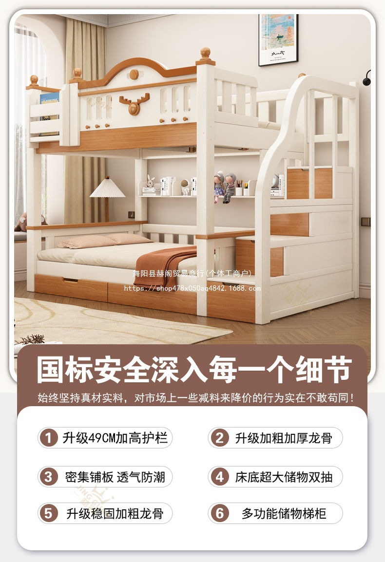 Jingguan 단단한 나무 두꺼운 이층 침대 작은 아파트 어린이 이층 침대 가정용 다기능 높고 낮은 침대 기숙사 이층 침대스토어 가기