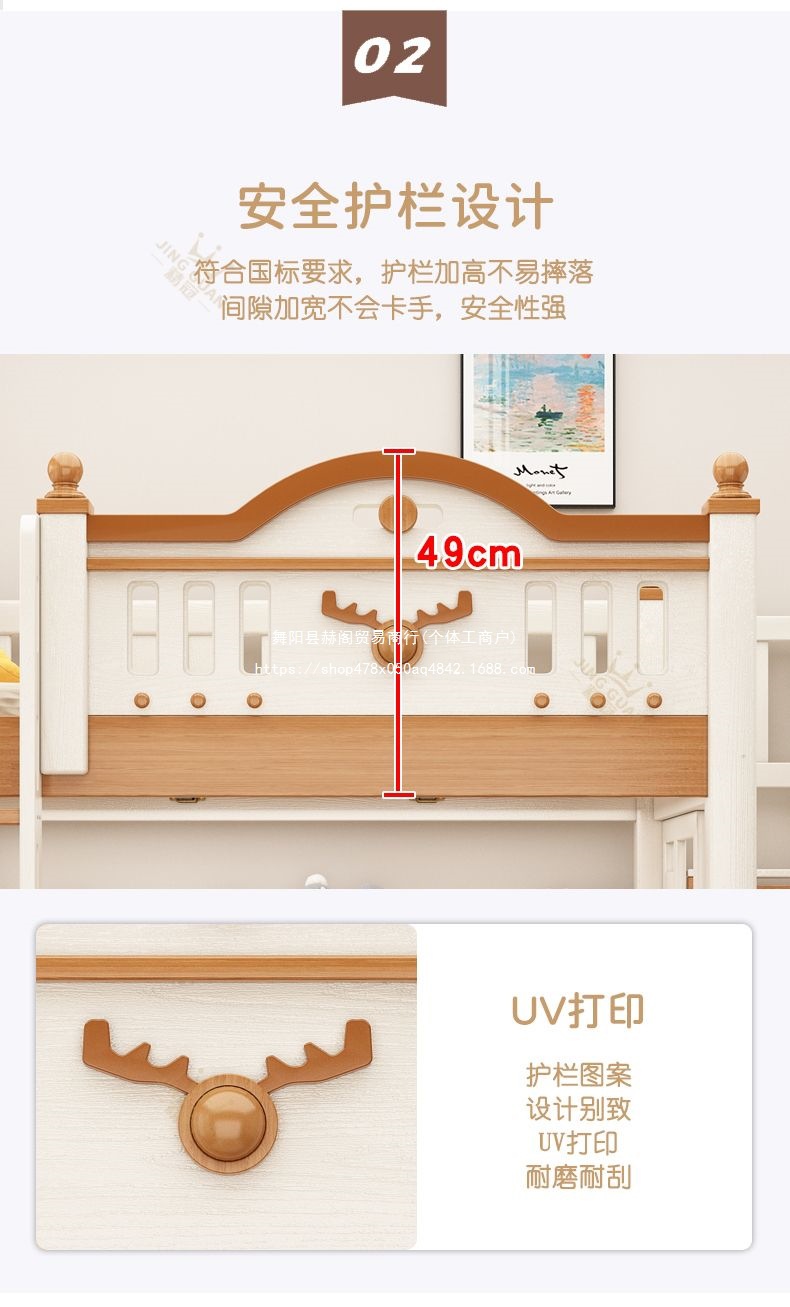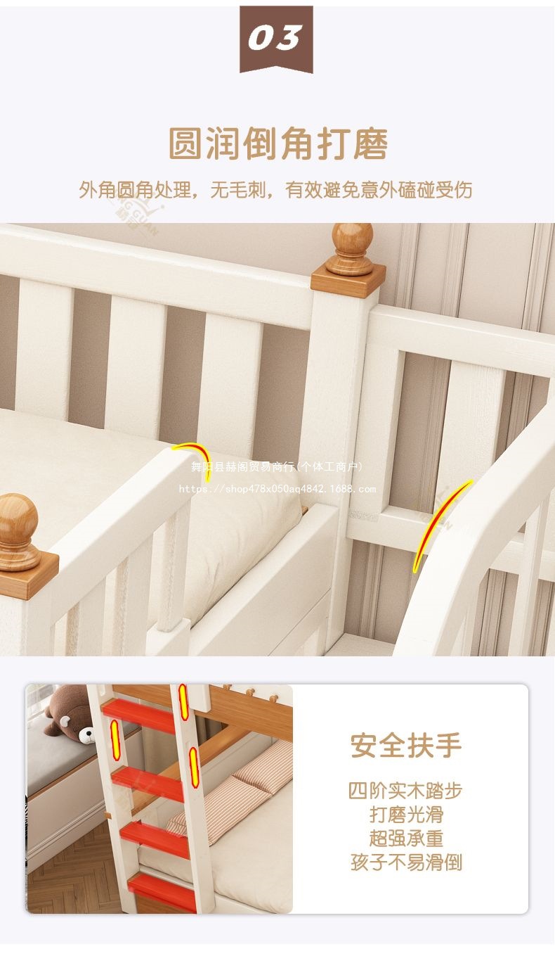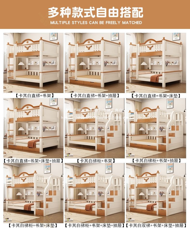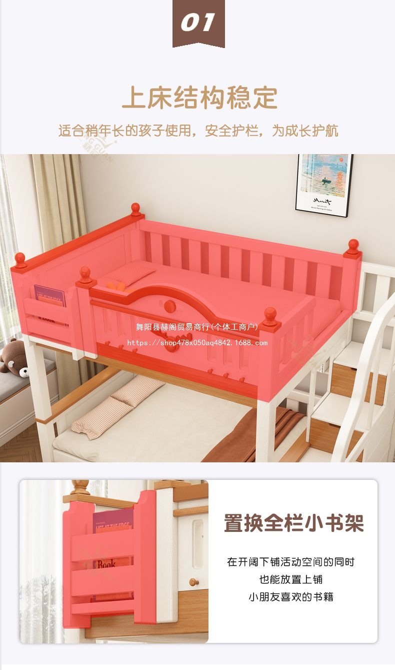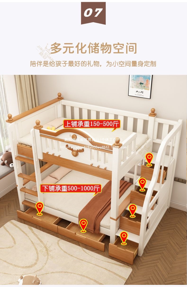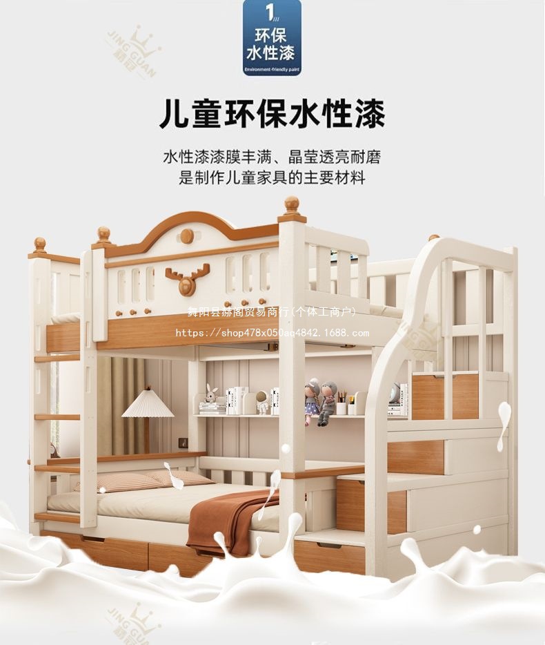 Jingguan 단단한 나무 두꺼운 이층 침대 작은 아파트 어린이 이층 침대 가정용 다기능 높고 낮은 침대 기숙사 이층 침대스토어 가기