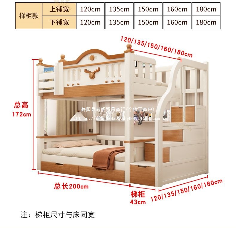 • 상부 침대 폭 180cm 하부 침대 폭 180cm