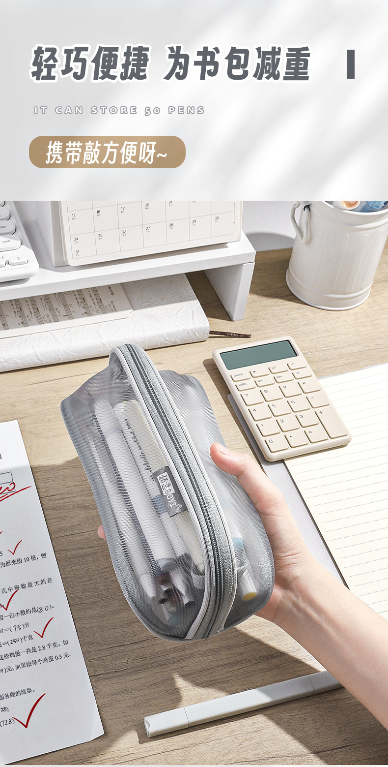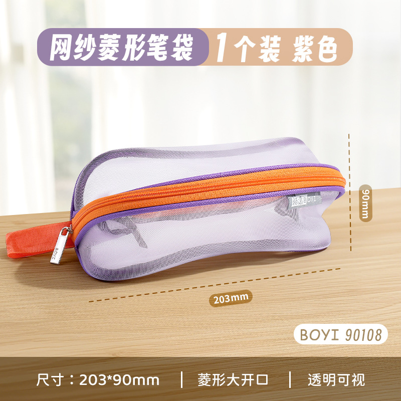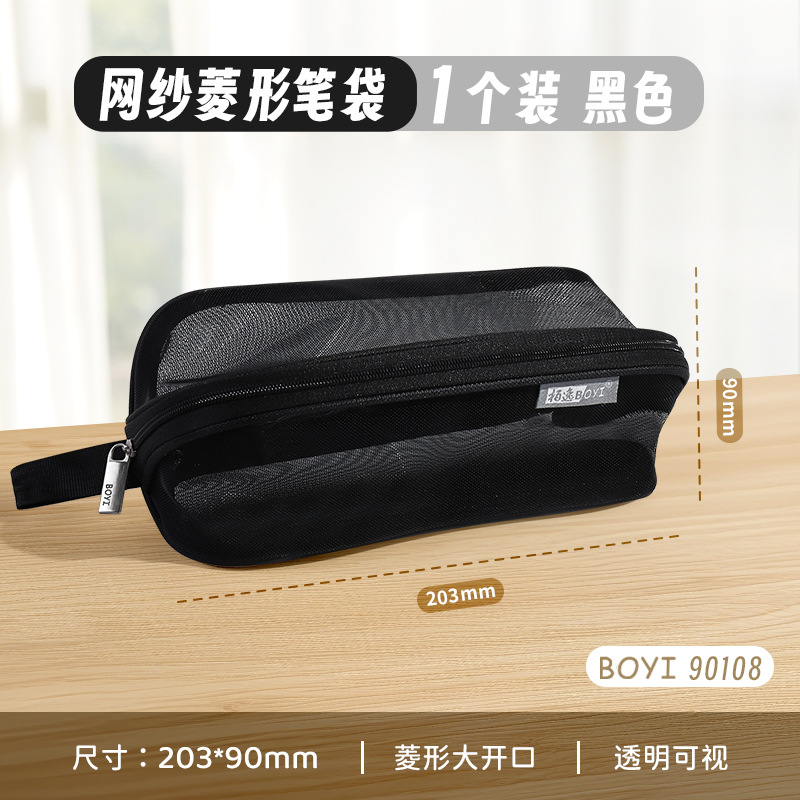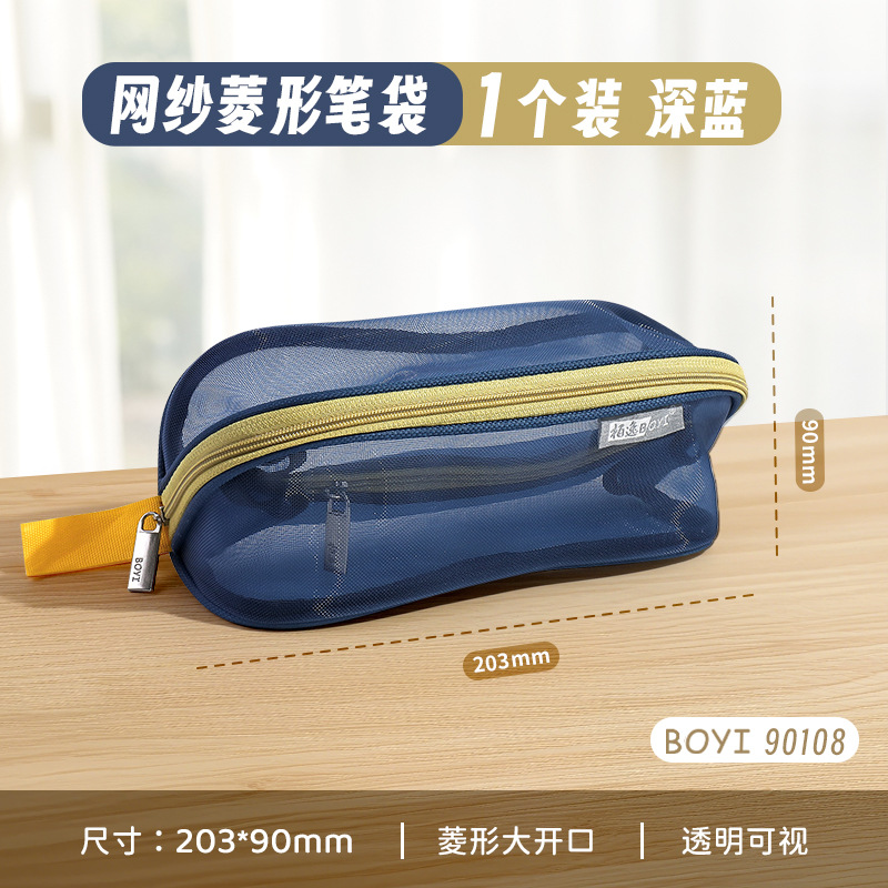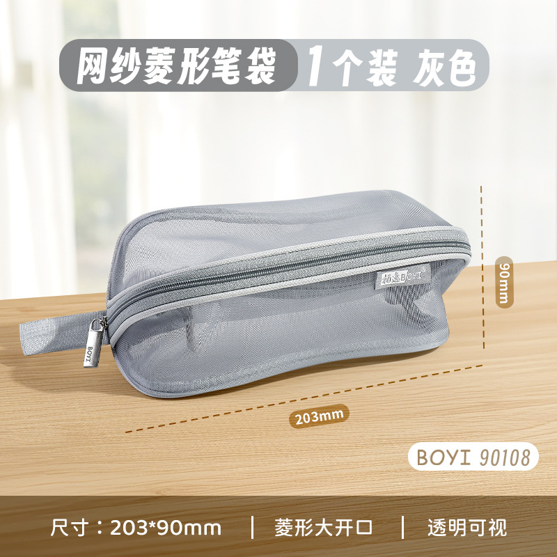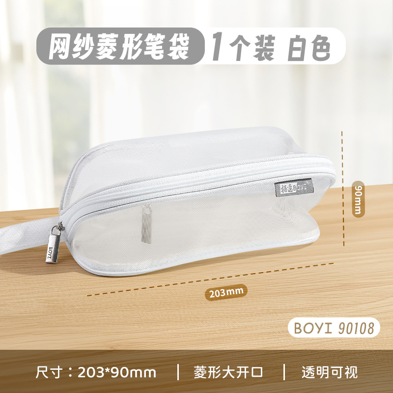 투명 메쉬 연필 가방 180도 대형 개방형 대용량 간단한 도파민 컬러 학생 문구 보관 연필 가방