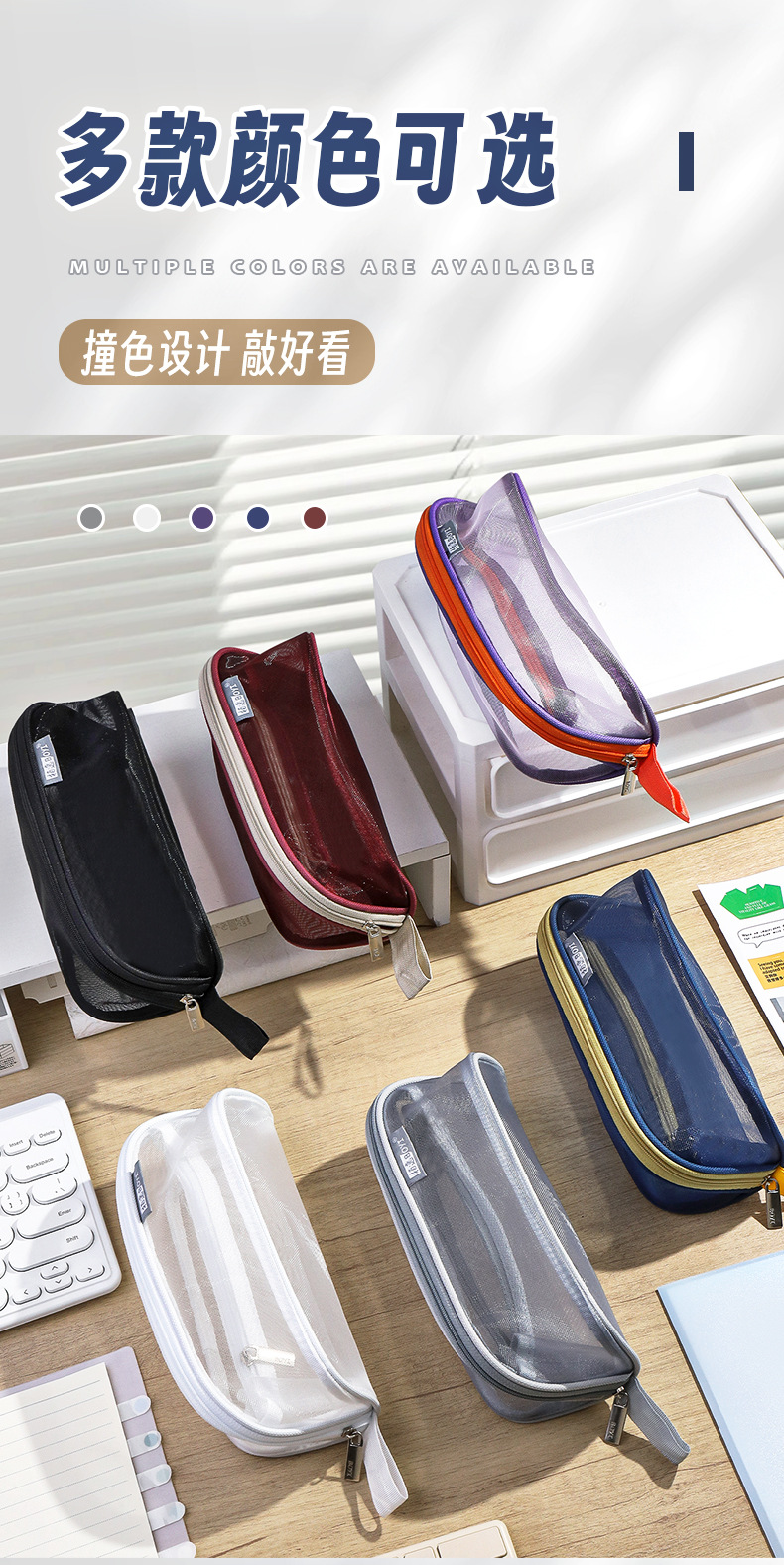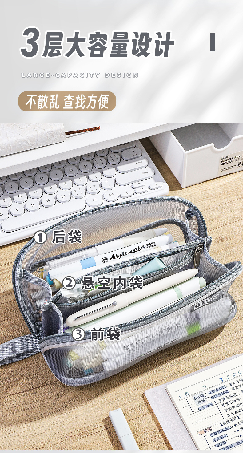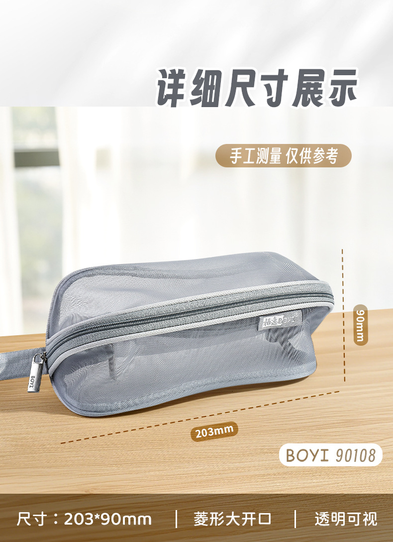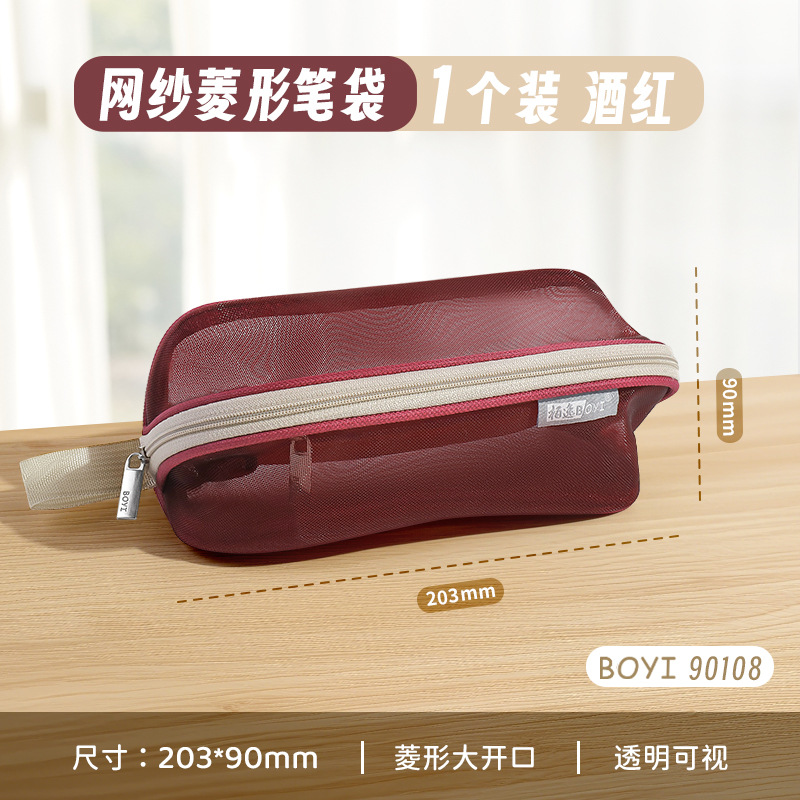 투명 메쉬 연필 가방 180도 대형 개방형 대용량 간단한 도파민 컬러 학생 문구 보관 연필 가방