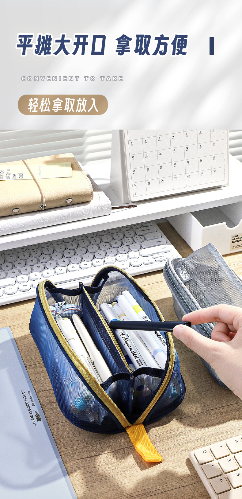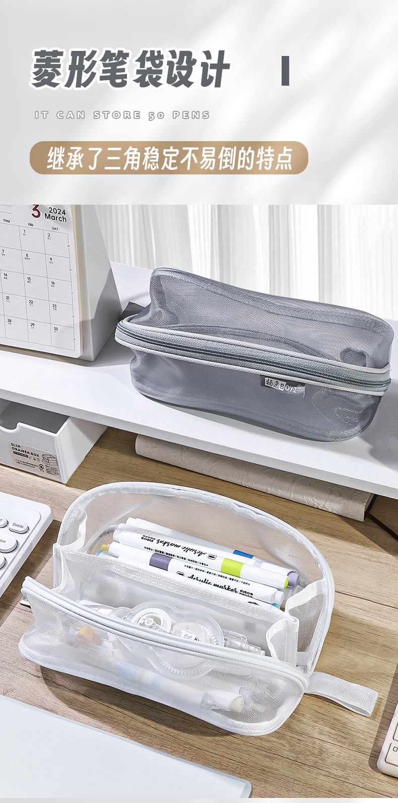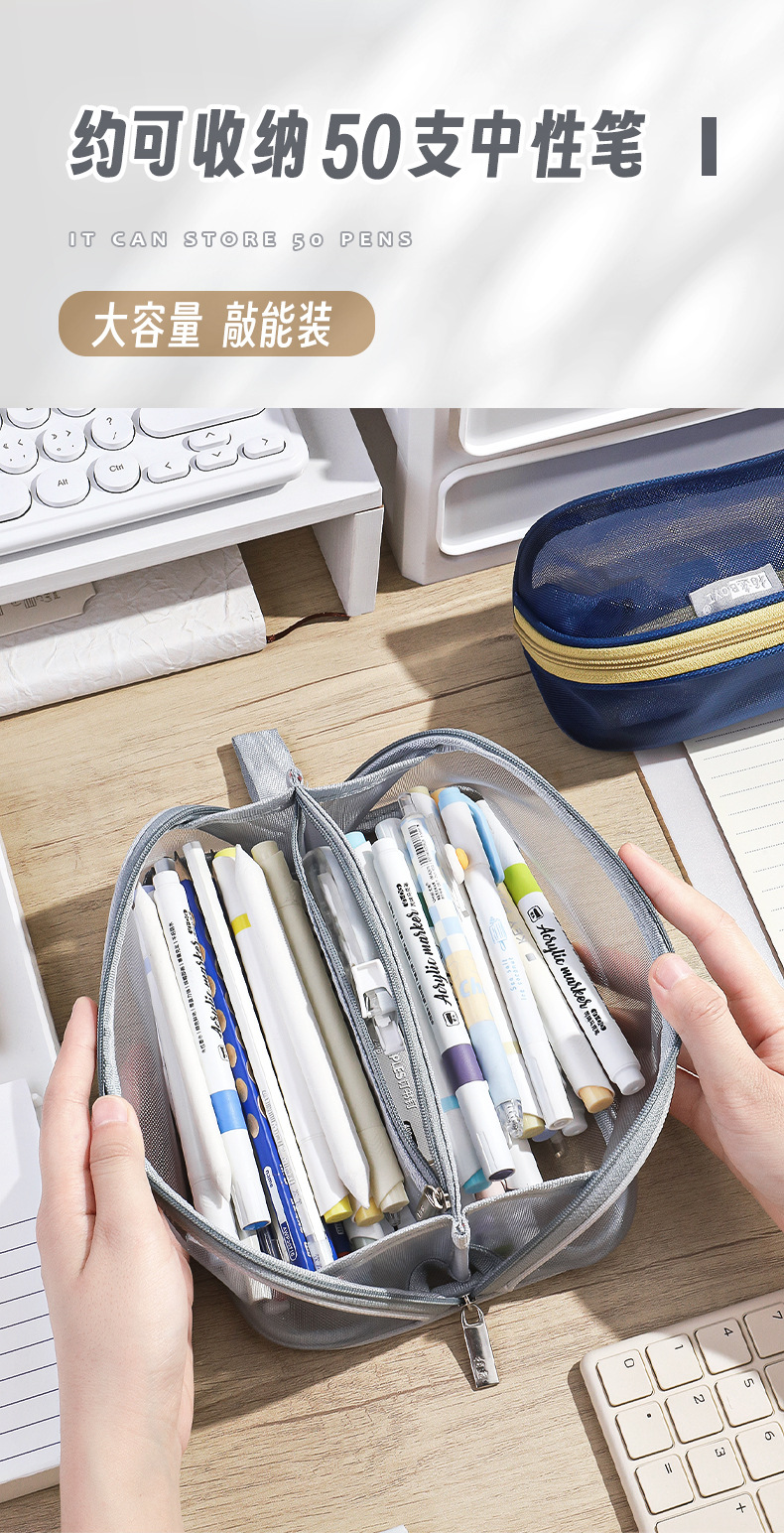 투명 메쉬 연필 가방 180도 대형 개방형 대용량 간단한 도파민 컬러 학생 문구 보관 연필 가방스토어 가기
