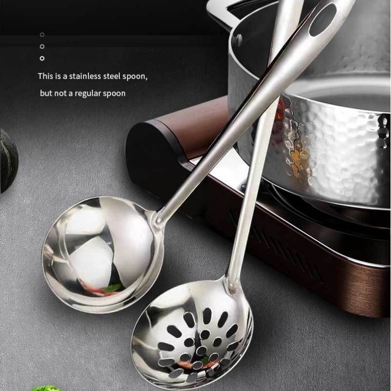 스테인리스 국자, 철망 국자, 전골용 긴 손잡이 식기, 주방용 국자, 죽 및 국용 천공된 도구 세트, 두꺼운 숟가락