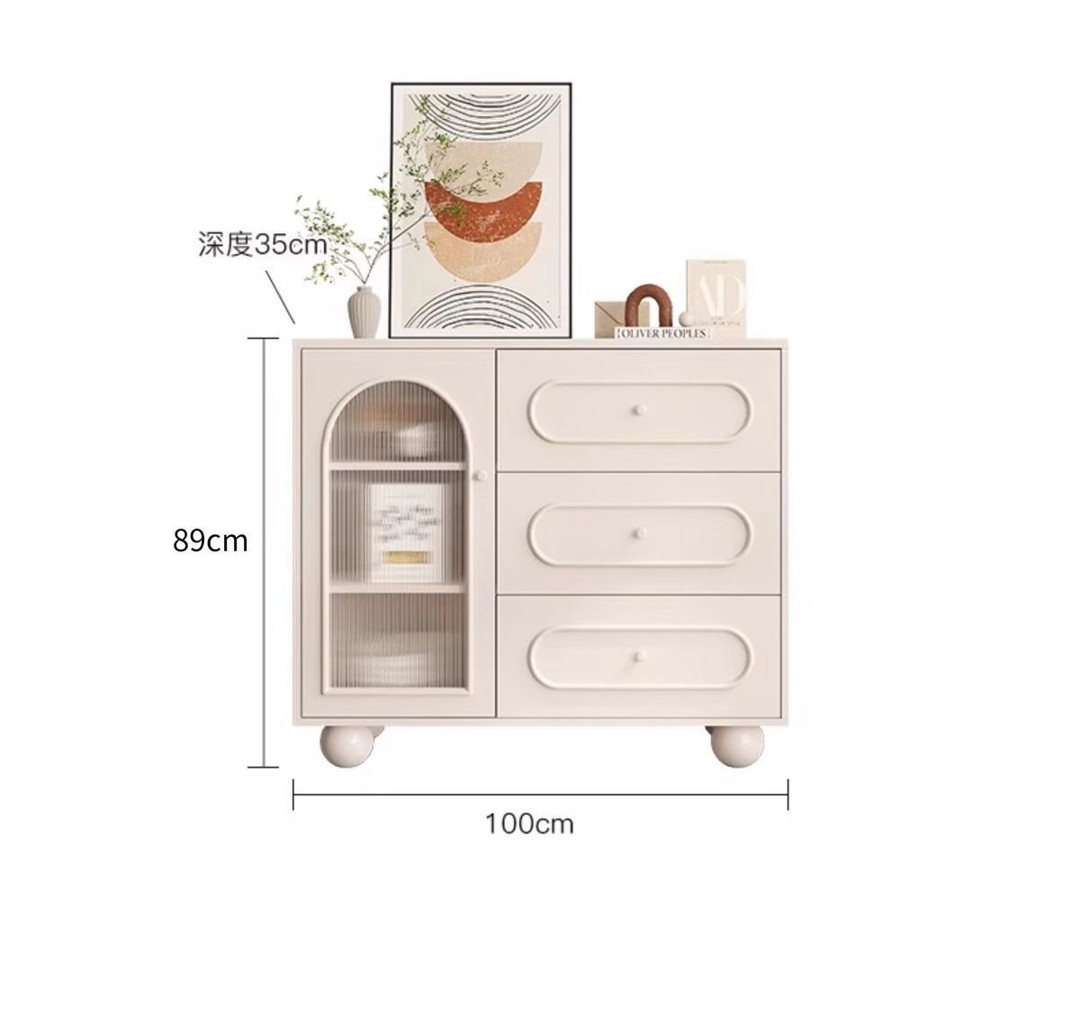 • 업그레이드된 단일 도어 찬장 100CM 사이드보드 [이탈리안 릴리프 도어] -