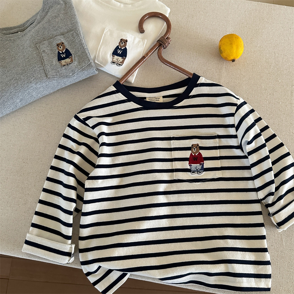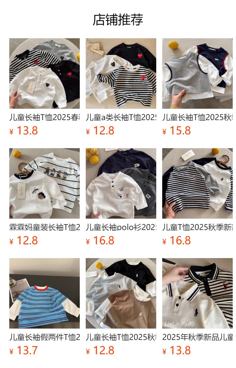 아동용 긴팔 티셔츠 2025 가을 소년 일본식 단색 바닥 셔츠 아기 겉옷 도매스토어 가기