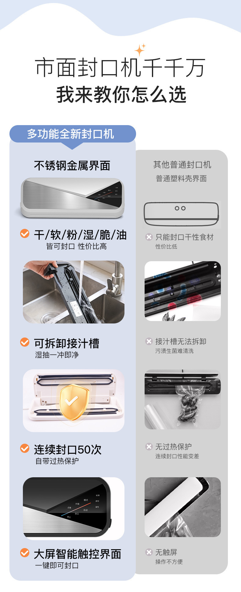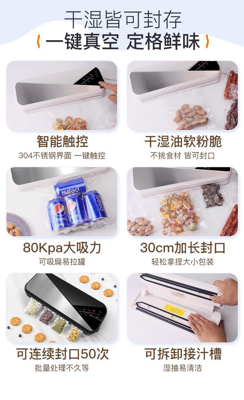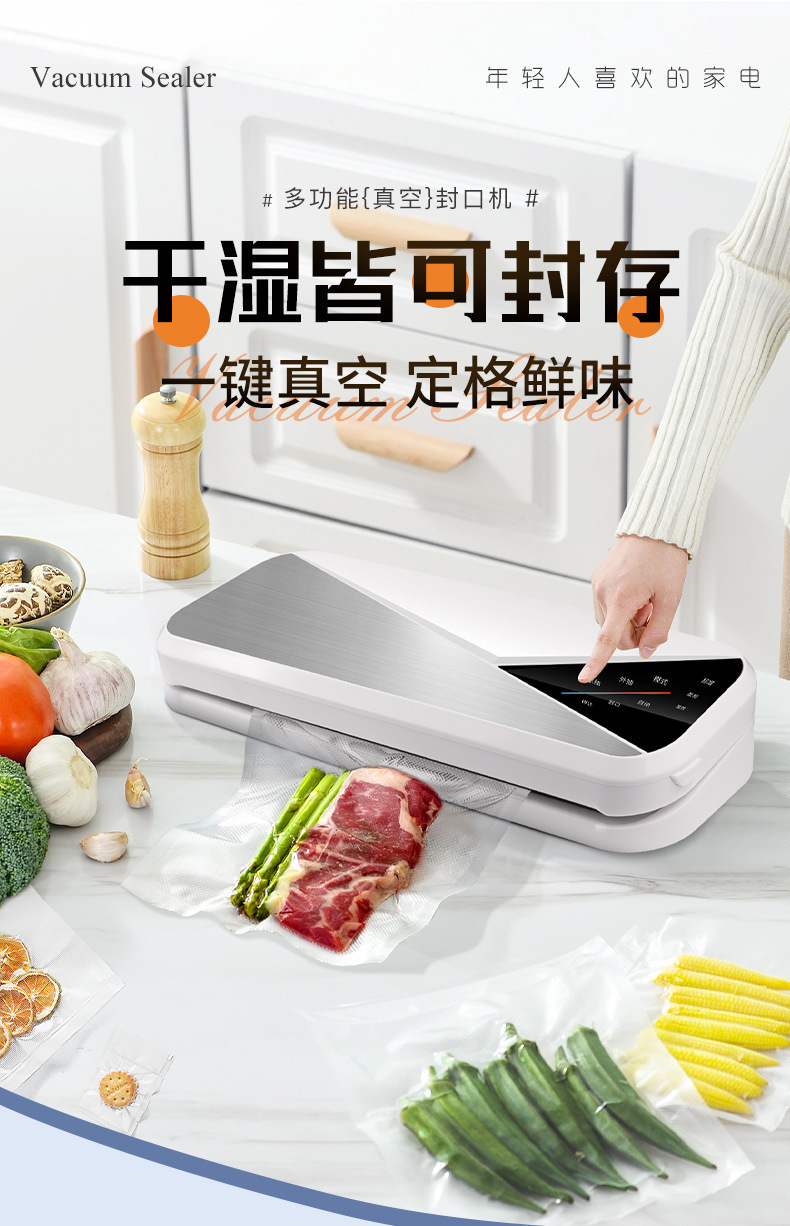 跨境真空包装机家用自动真空封口机智能触控塑封机便携厨房保鲜机