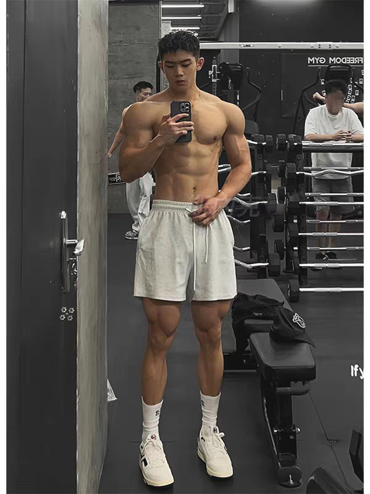 근육질 남성을 위한 피트니스 트레이닝 스포츠 반바지, 면 통기성 루즈 쿼터 팬츠, 섹시한 텐션 아우터 워크웨어 바지, 트렌디스토어 가기