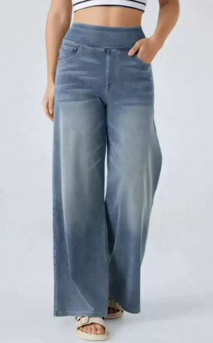 여성용 크로스보더 신상 대형 데님 와이드 팬츠, 하이웨이스트, 슬리밍, 멀티 포켓, 스트레이트 레그, 루즈한 캣츠비즈 캐주얼 팬츠스토어 가기