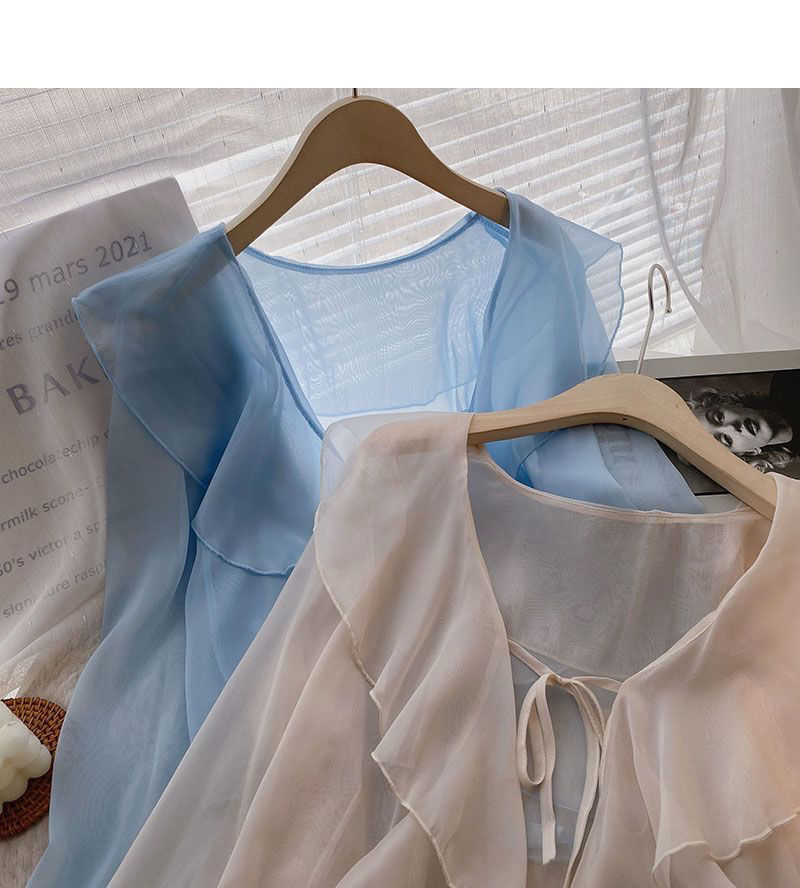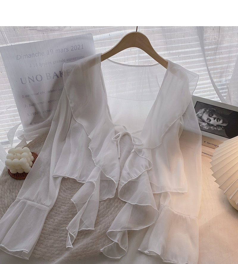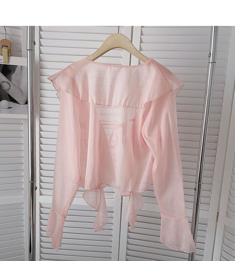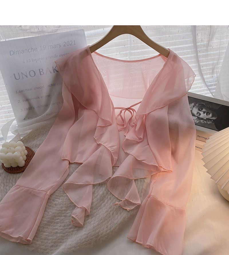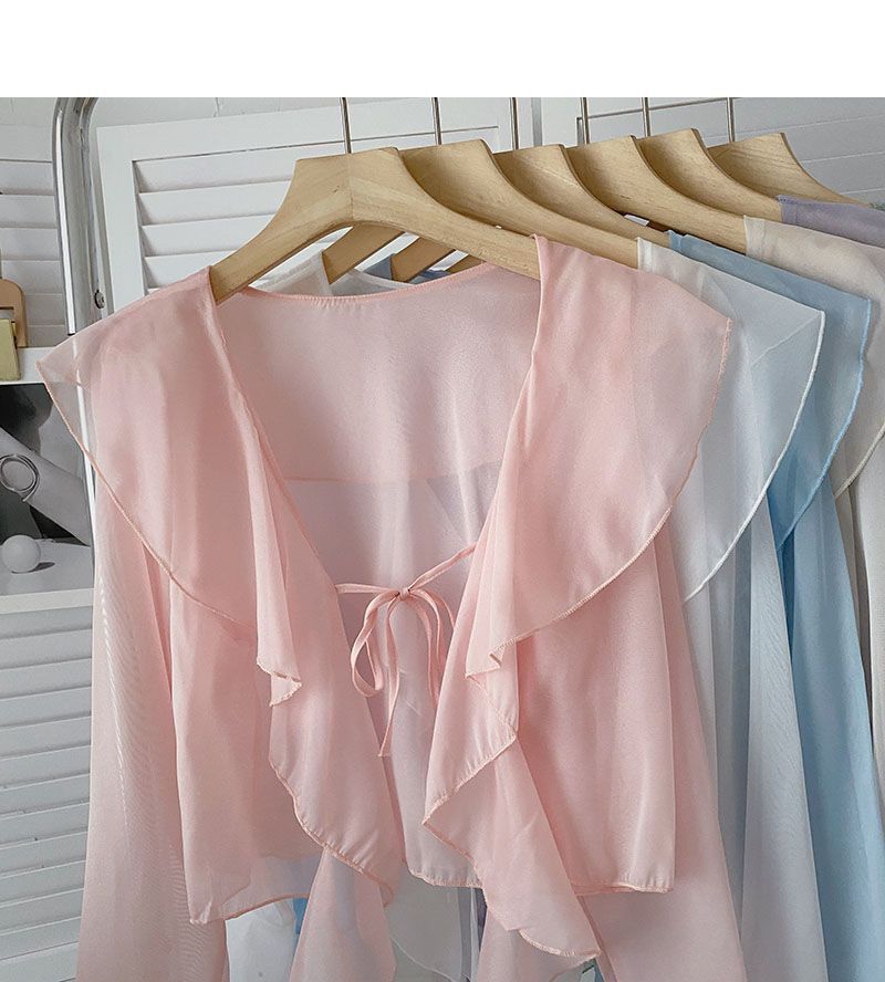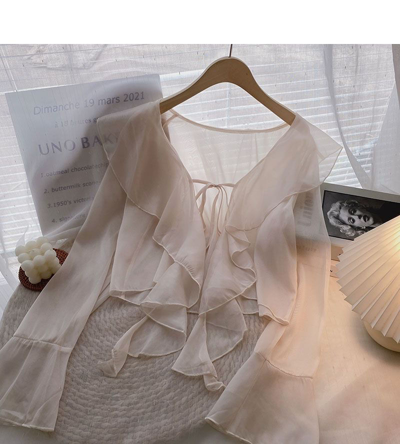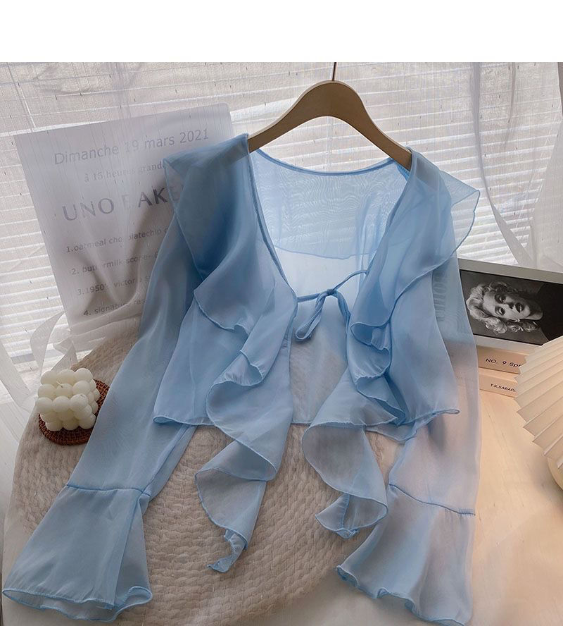 여성용 러플 쉬폰 자외선 차단 의류, 긴팔 레이스 업 벨 슬리브 베이비돌 셔츠, 여성용 여름 아우터, 에어컨 가디건, 트렌디스토어 가기