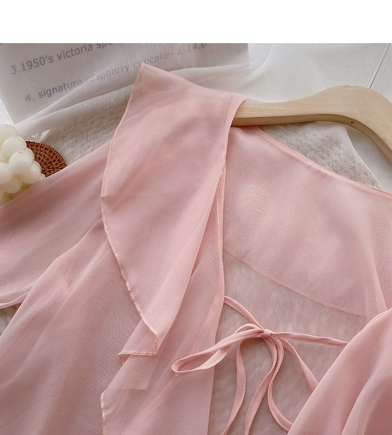 여성용 러플 쉬폰 자외선 차단 의류, 긴팔 레이스 업 벨 슬리브 베이비돌 셔츠, 여성용 여름 아우터, 에어컨 가디건, 트렌디