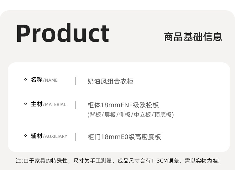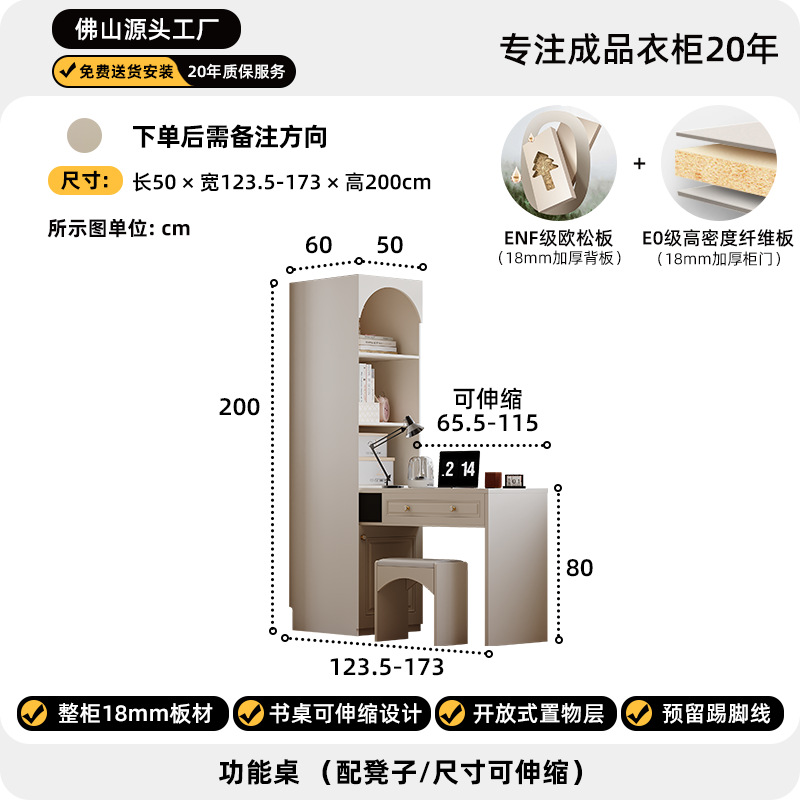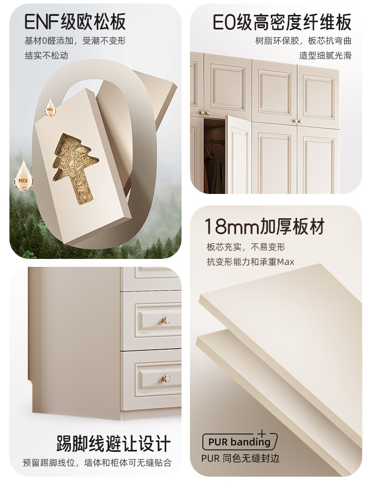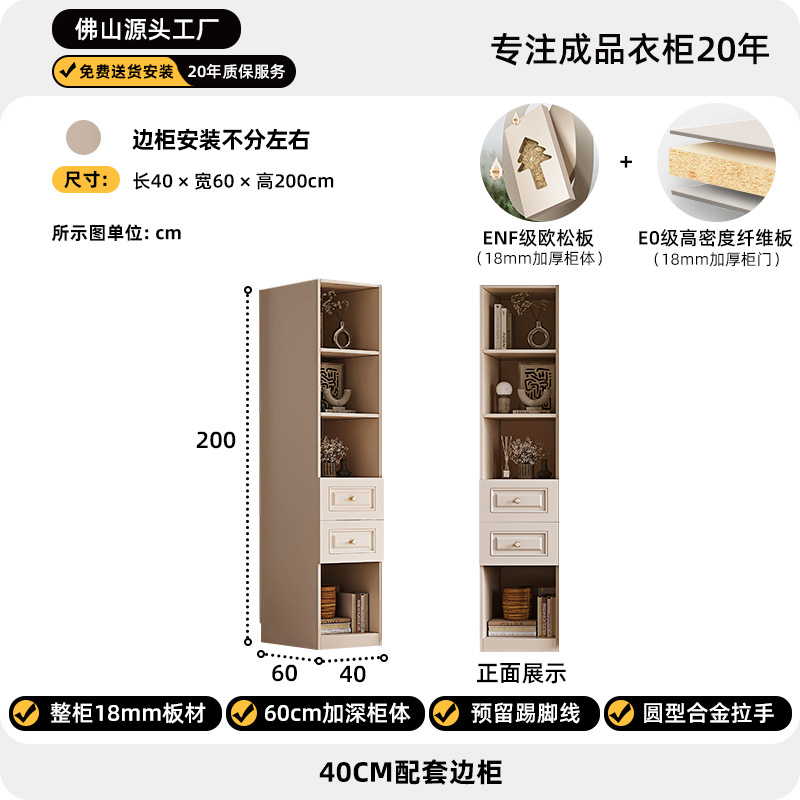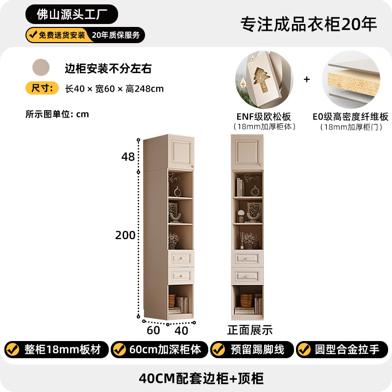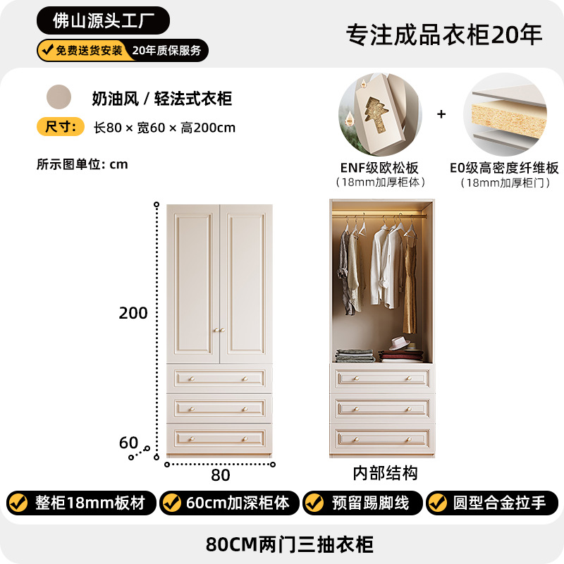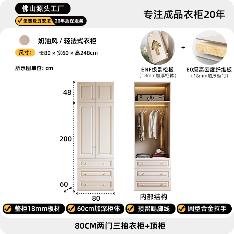 • 80CM 2도어 옷장 + 상단 캐비닛 업그레이드 18MM 두께의 플레이트/크림 화이트/60CM 측면 너비