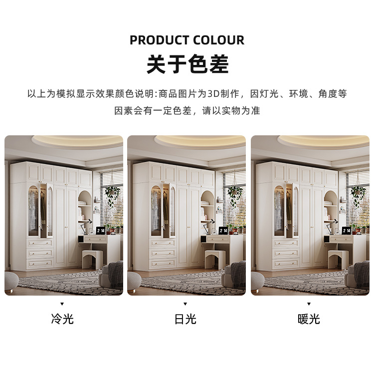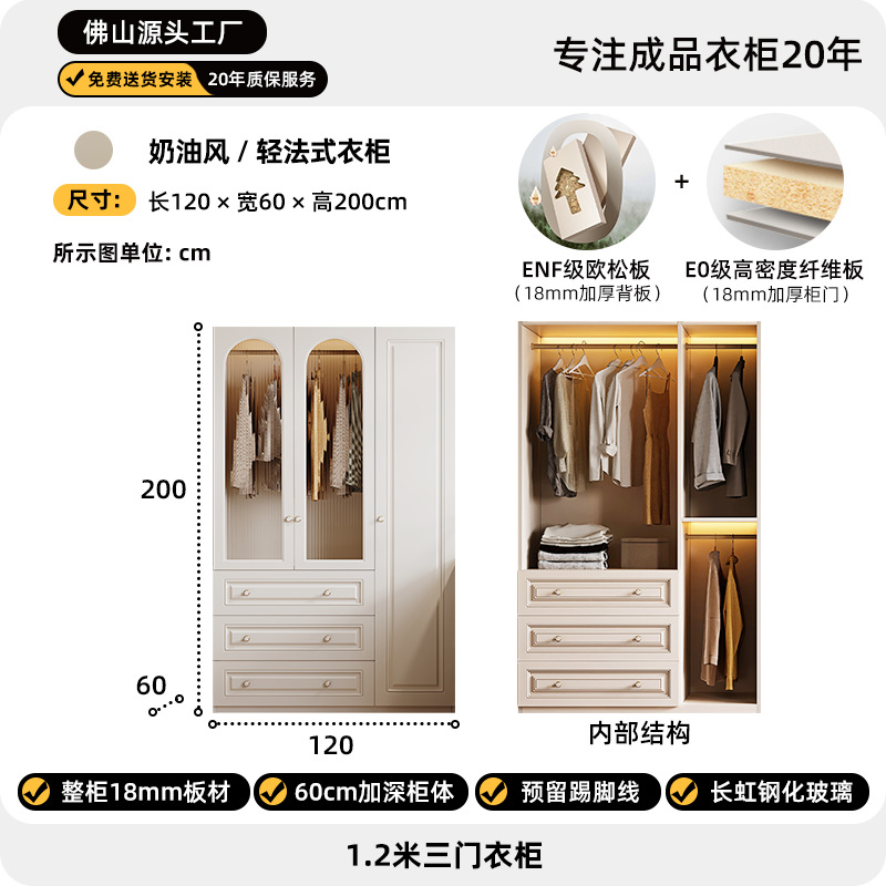 • 유리 모델/120CM 3도어 옷장 업그레이드 18MM 두께의 플레이트/크림 화이트/60CM 측면 너비