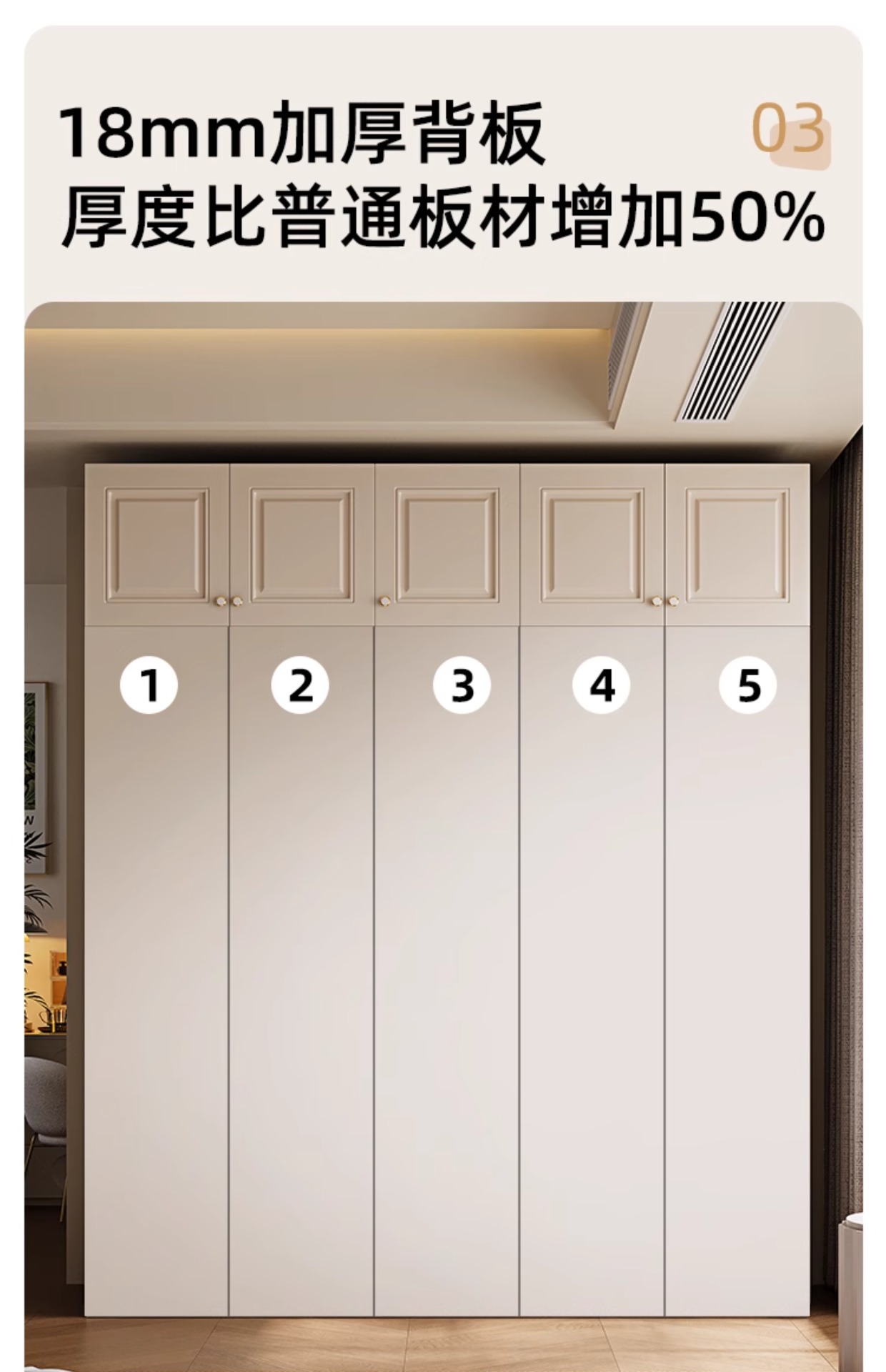 • 180CM 5도어 옷장 + 상단 캐비닛 업그레이드 18MM 두께의 플레이트/크림 화이트/측면 너비 60CM