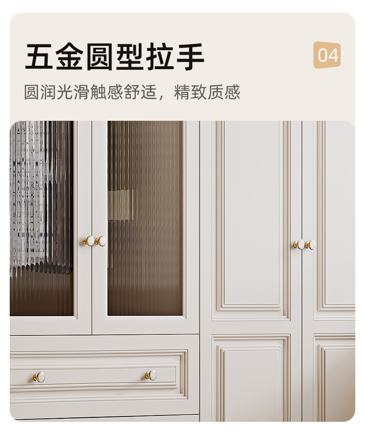 • 유리 모델/140CM 4도어 옷장 업그레이드 18MM 두께의 플레이트/크림 화이트/측면 너비 60CM