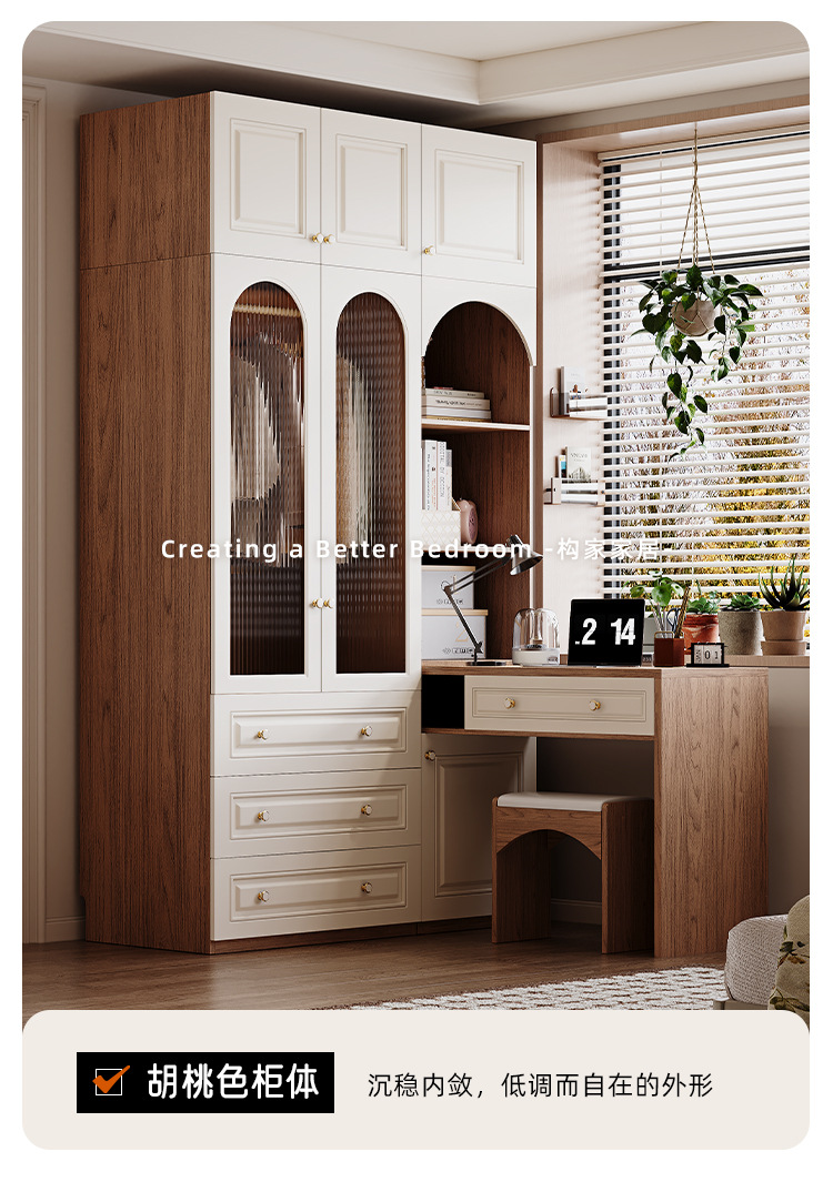 옷장과 책상이 통합된 심플하고 모던한 가정용 소형 아파트 미니멀 스타일 캐비닛 코너 컴퓨터 책상 흰색 대형 옷장스토어 가기