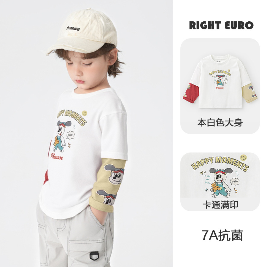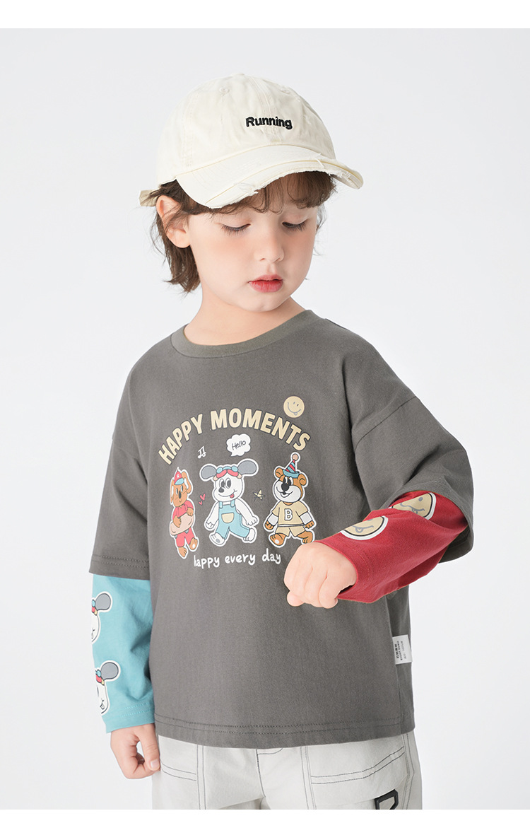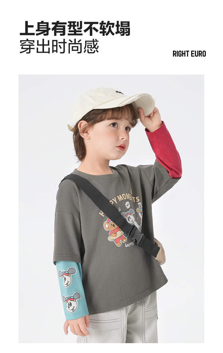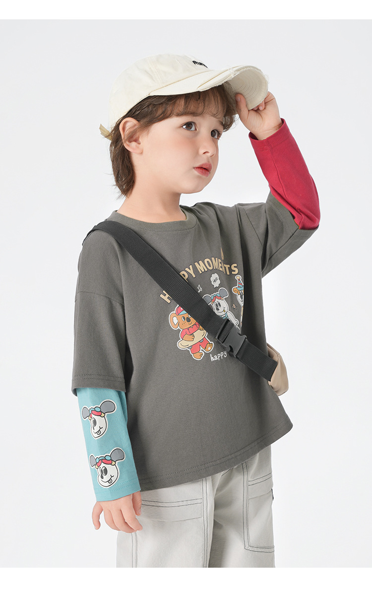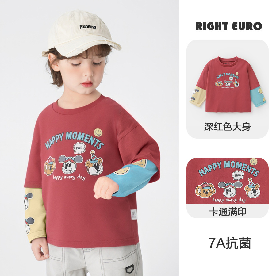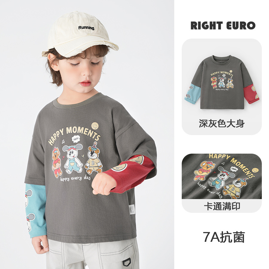 소년 순면 가짜 투피스 긴팔 티셔츠 가을 아동 의류 아동용 아기 봄, 가을 새로운 바닥 셔츠상의스토어 가기