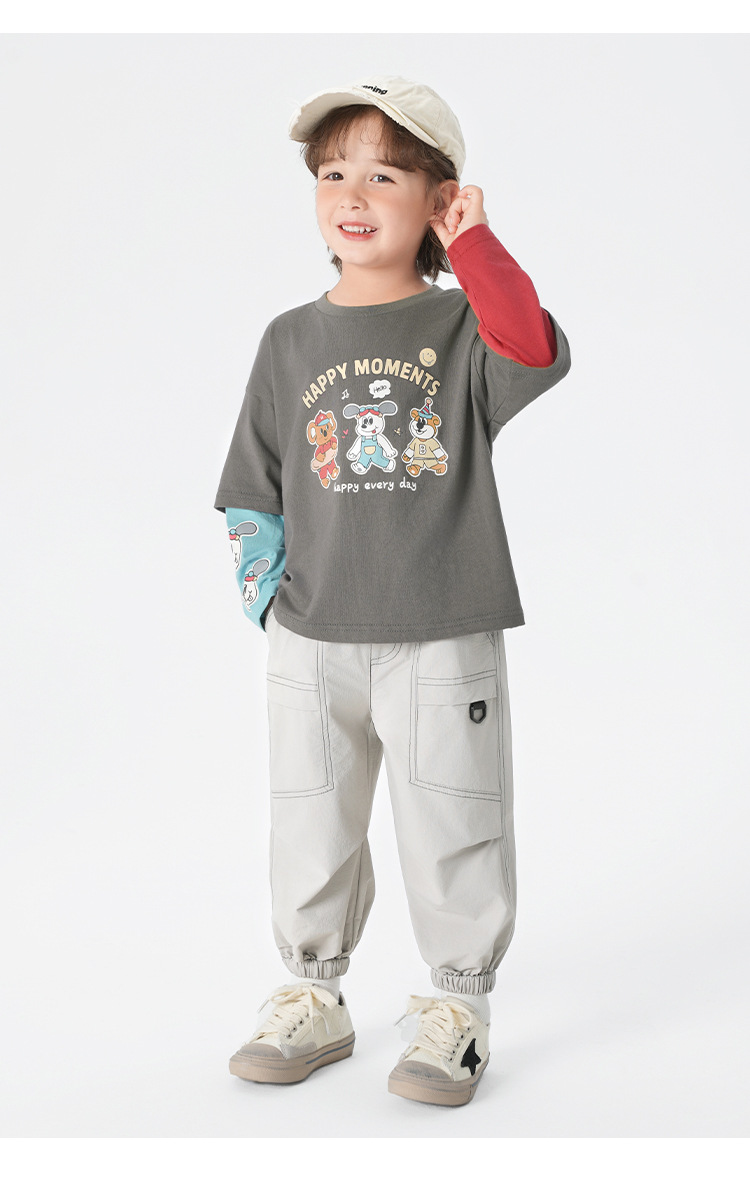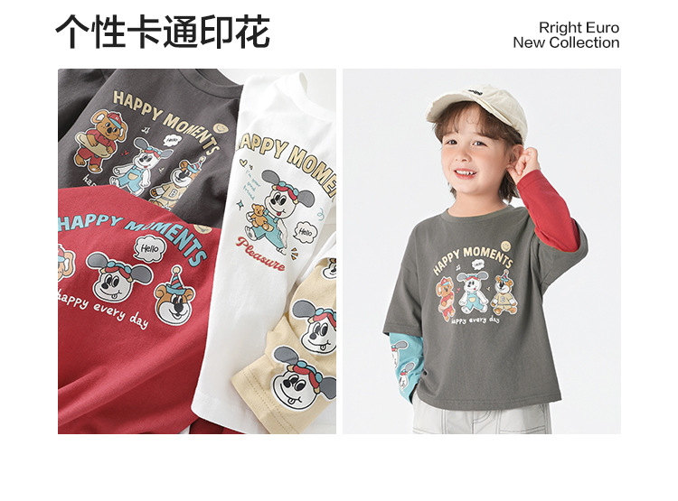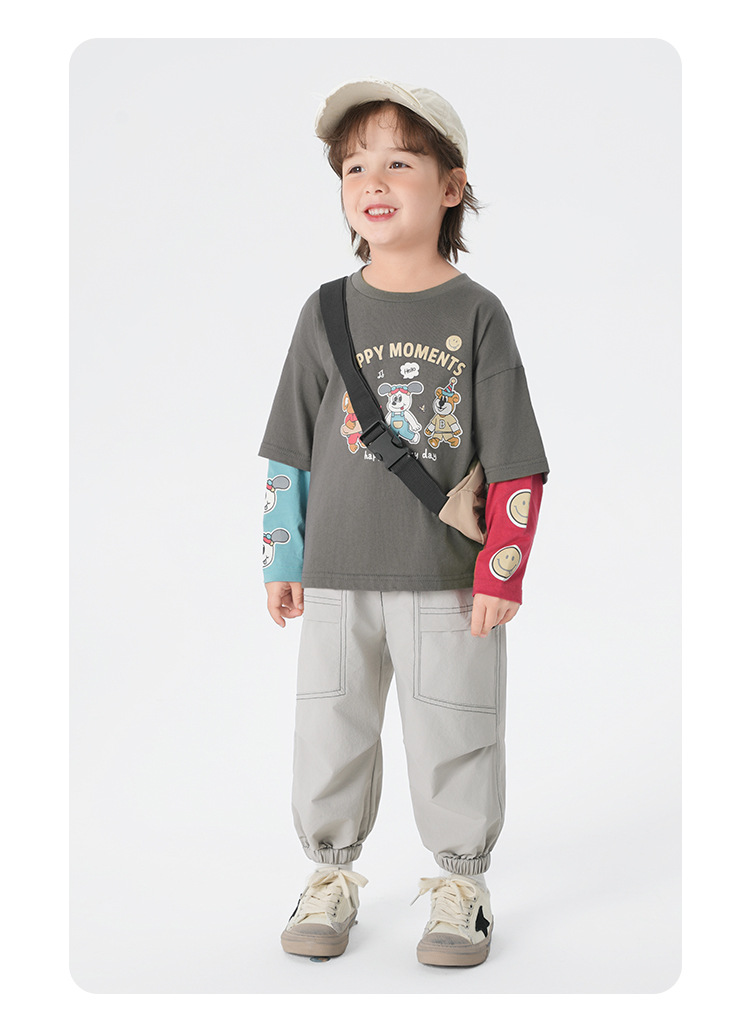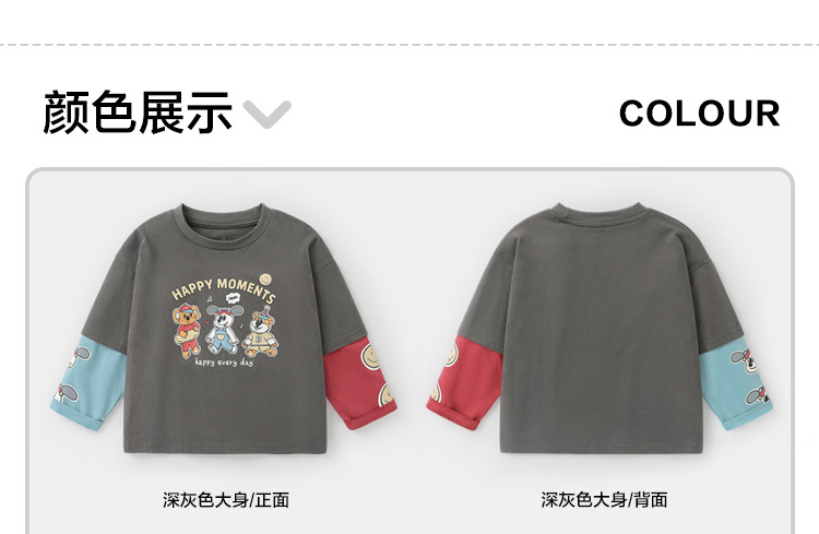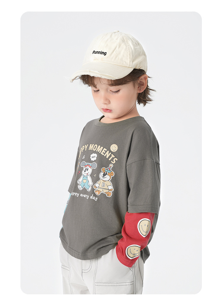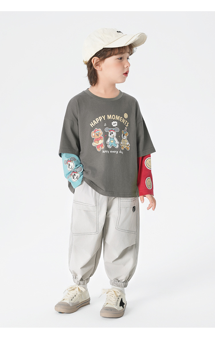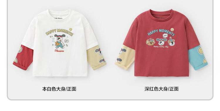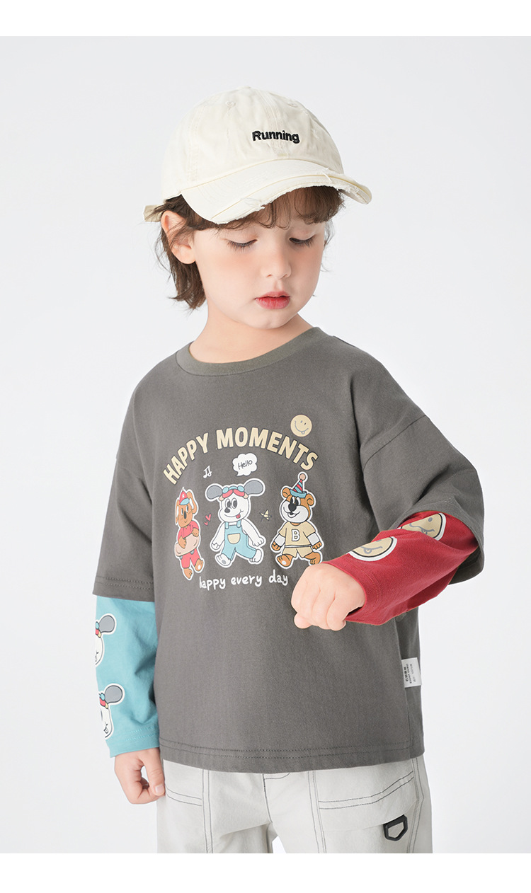 소년 순면 가짜 투피스 긴팔 티셔츠 가을 아동 의류 아동용 아기 봄, 가을 새로운 바닥 셔츠상의스토어 가기
