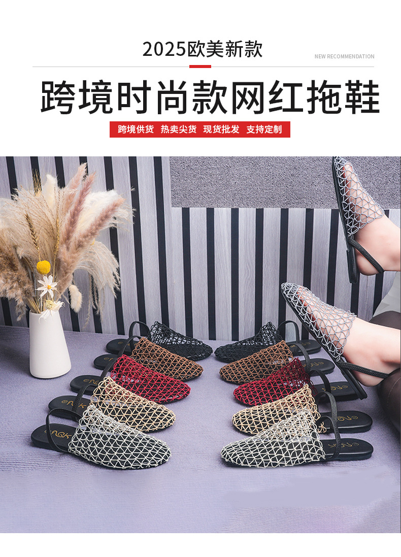 국경 간 패션 트롤링 신발 플랫 샌들 2025 여름 새로운 중공 편안한 해변 반 슬리퍼 공장