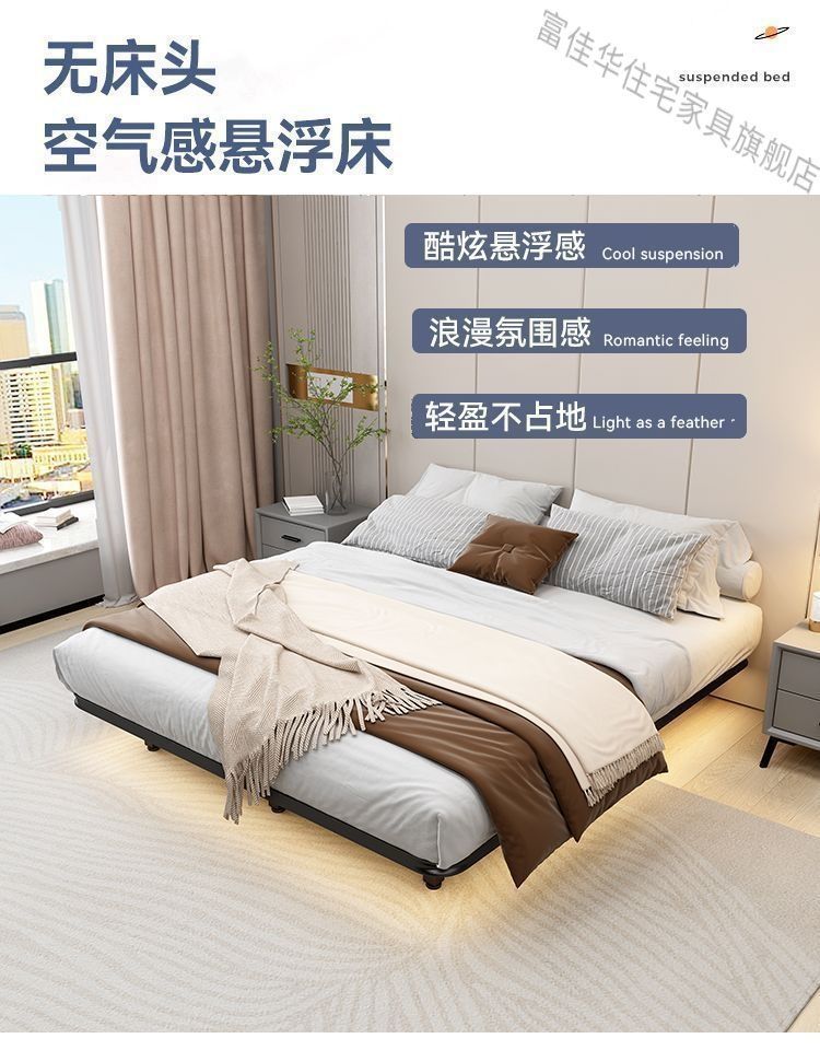 서스펜션 침대, 심플, 침대 없음, 일본식 미니멀리스트, 무소음 더블 침대, 전체 강철 랙, 마스터 침실 철제 침대 프레임, 크로스보더
