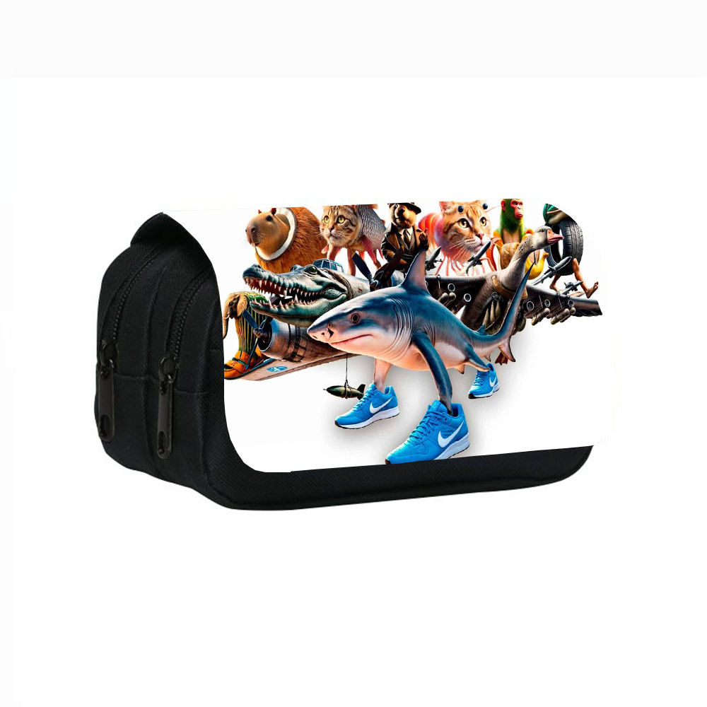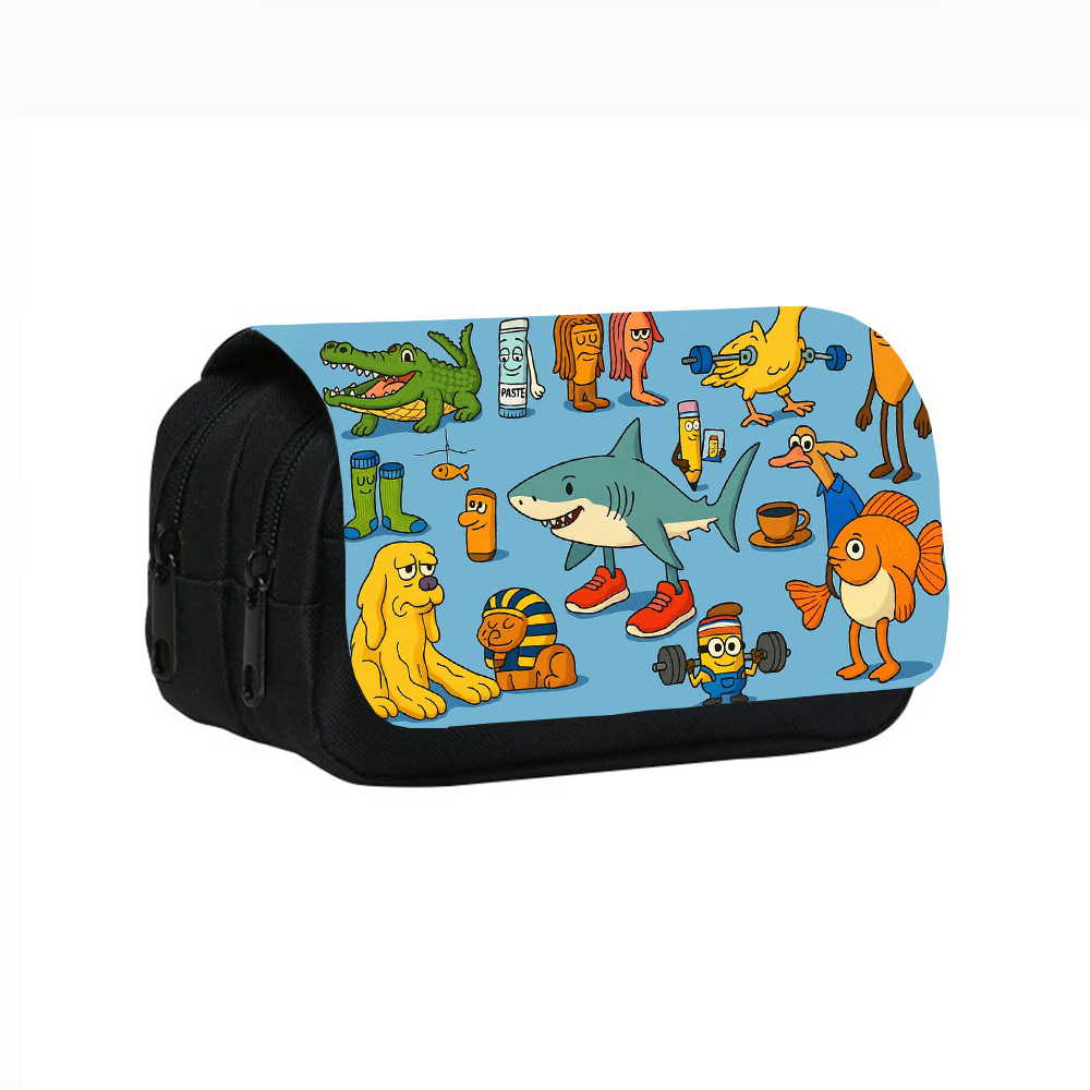 Shan Hai Jing tralalerotralala Shark tungtungtungSahur 나무 막대 사람 더블 레이어 연필 케이스스토어 가기