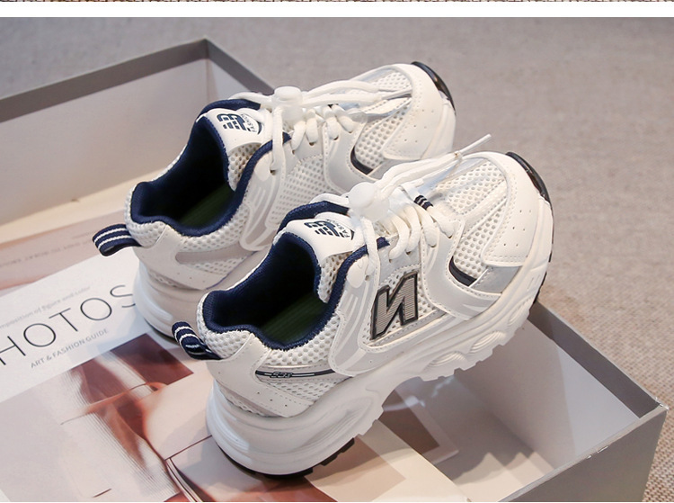 어린이 흰색 운동화 2025 봄 메쉬 통기성 소년과 소녀 유행 브랜드 아빠 신발 중형 및 대형 어린이 캐주얼 운동화