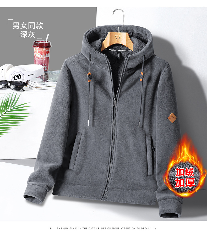 가을, 겨울 커플 양털 후드 따뜻한 스웨트 캐주얼 다목적 폴라 플리스 커플 코트 카디건 탑