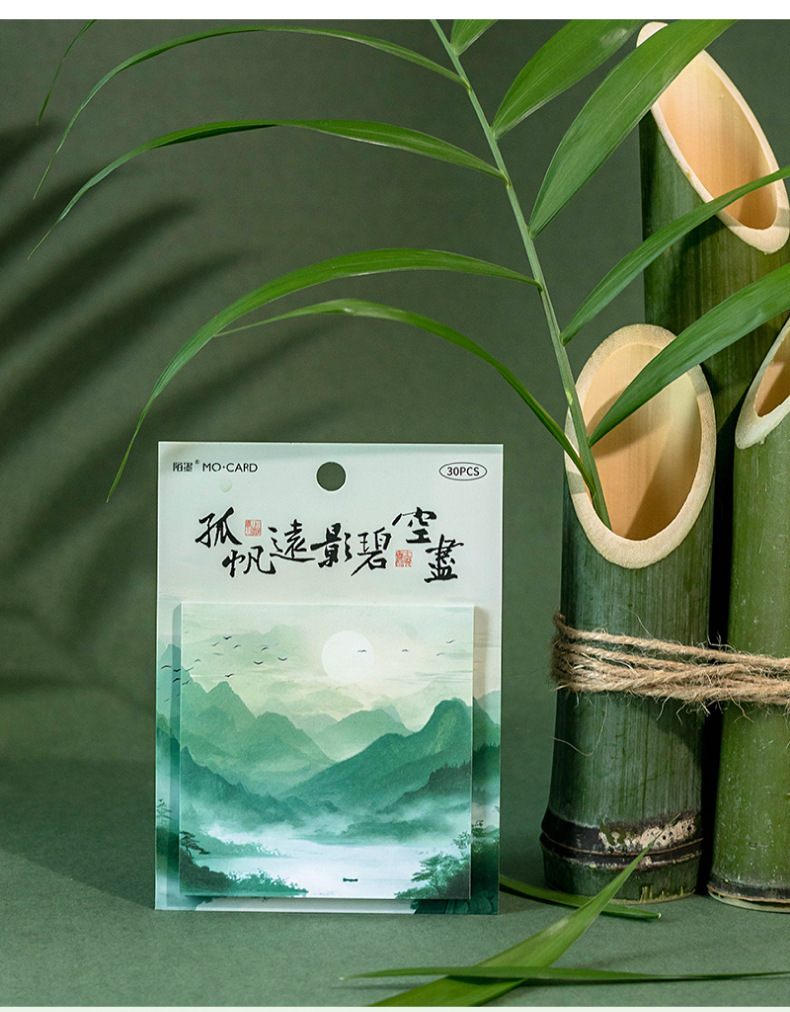 Momo Qianshan 나만의 여행 시리즈 중국 유행 스타일 스티커 메모 고대 스타일 풍경화 학생 메시지 메모 메모 용지