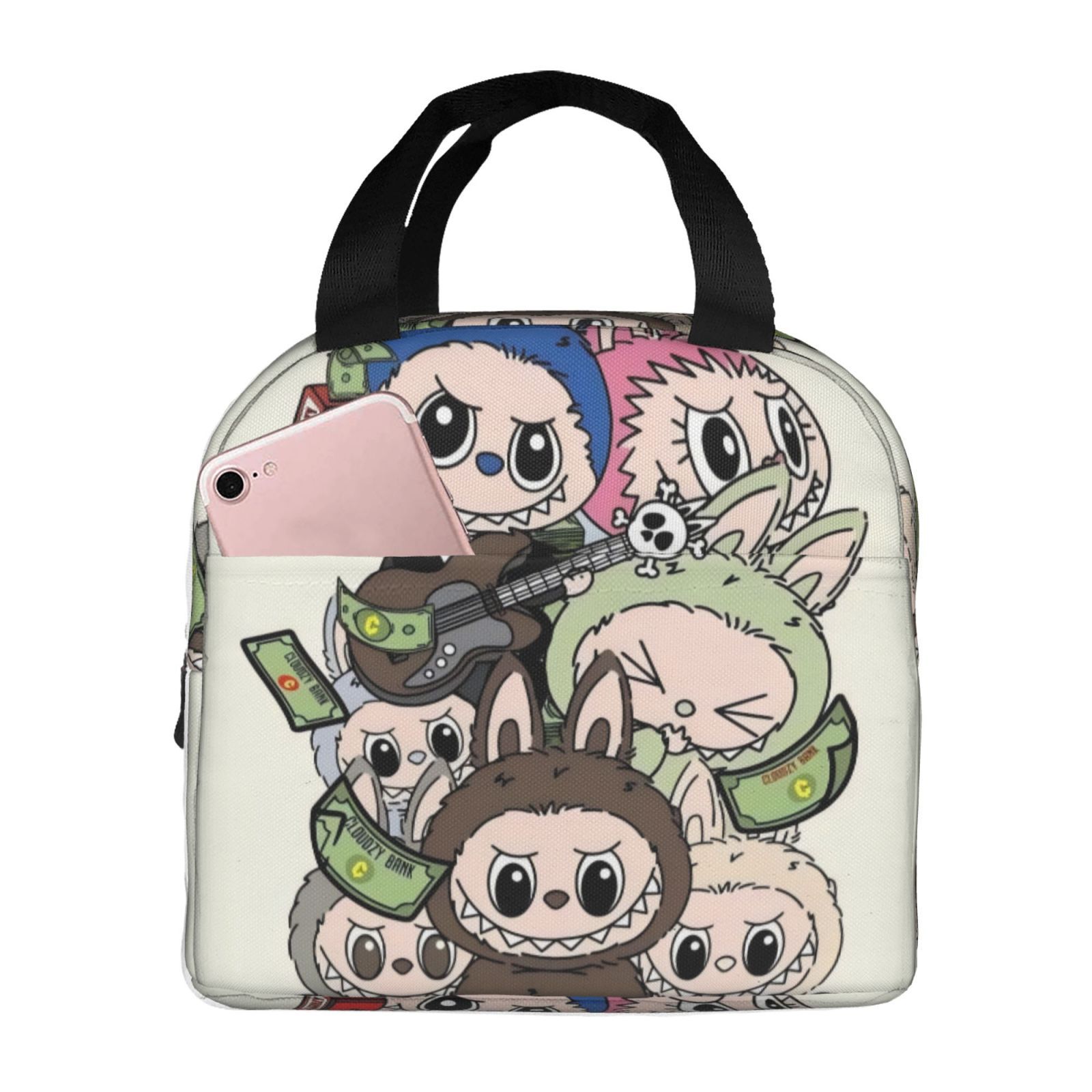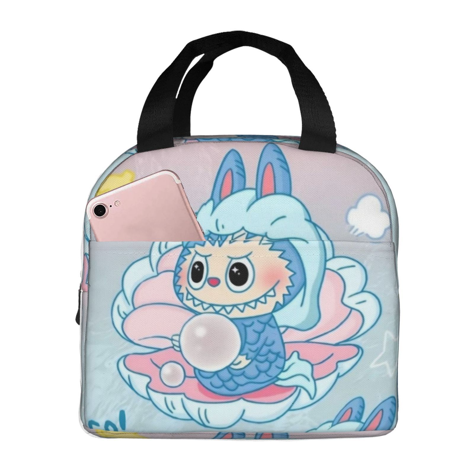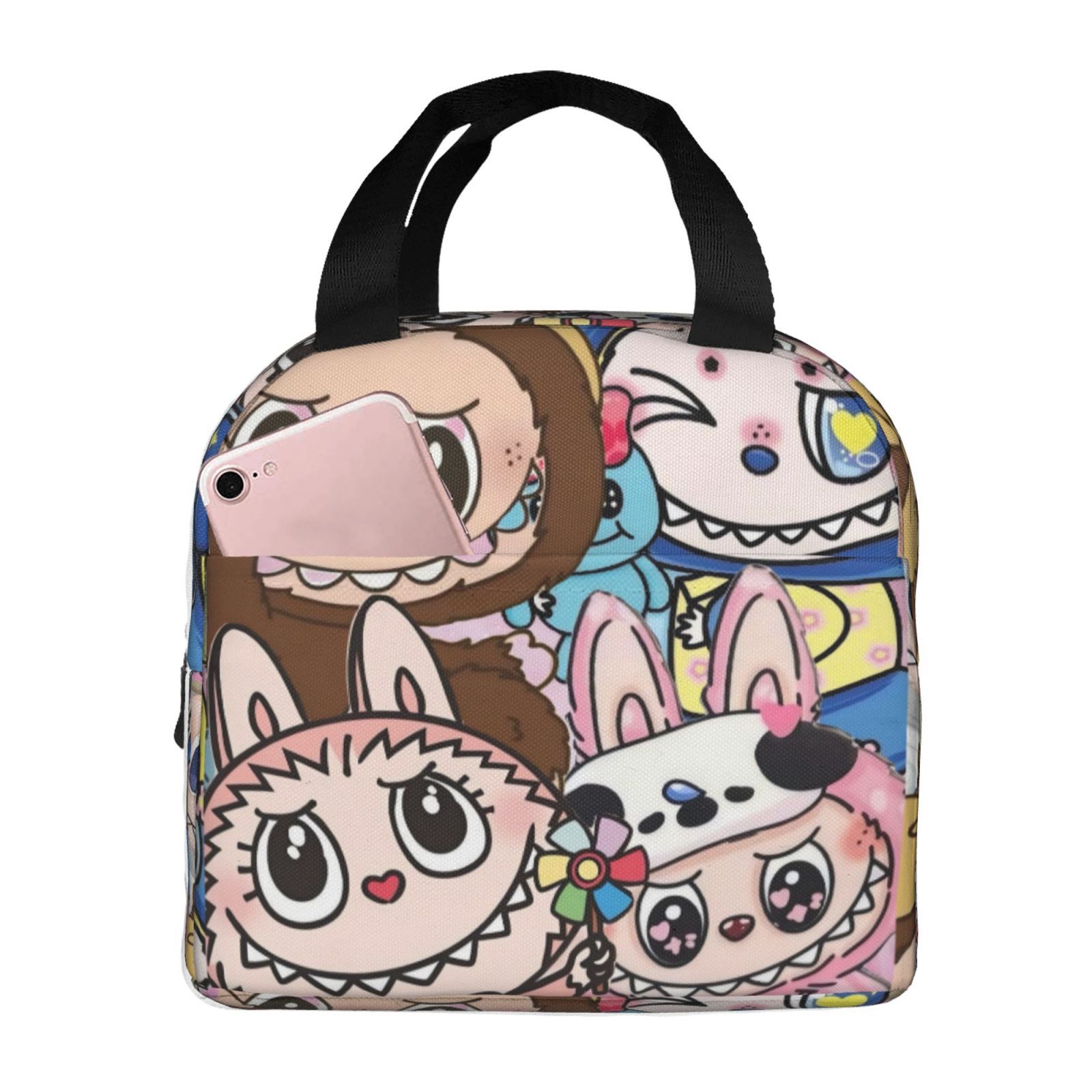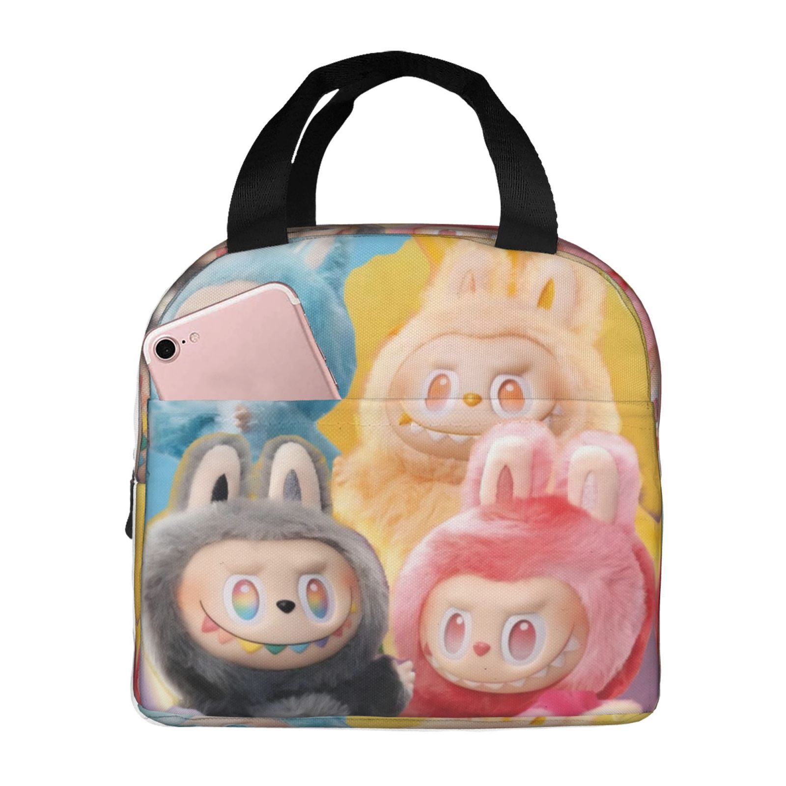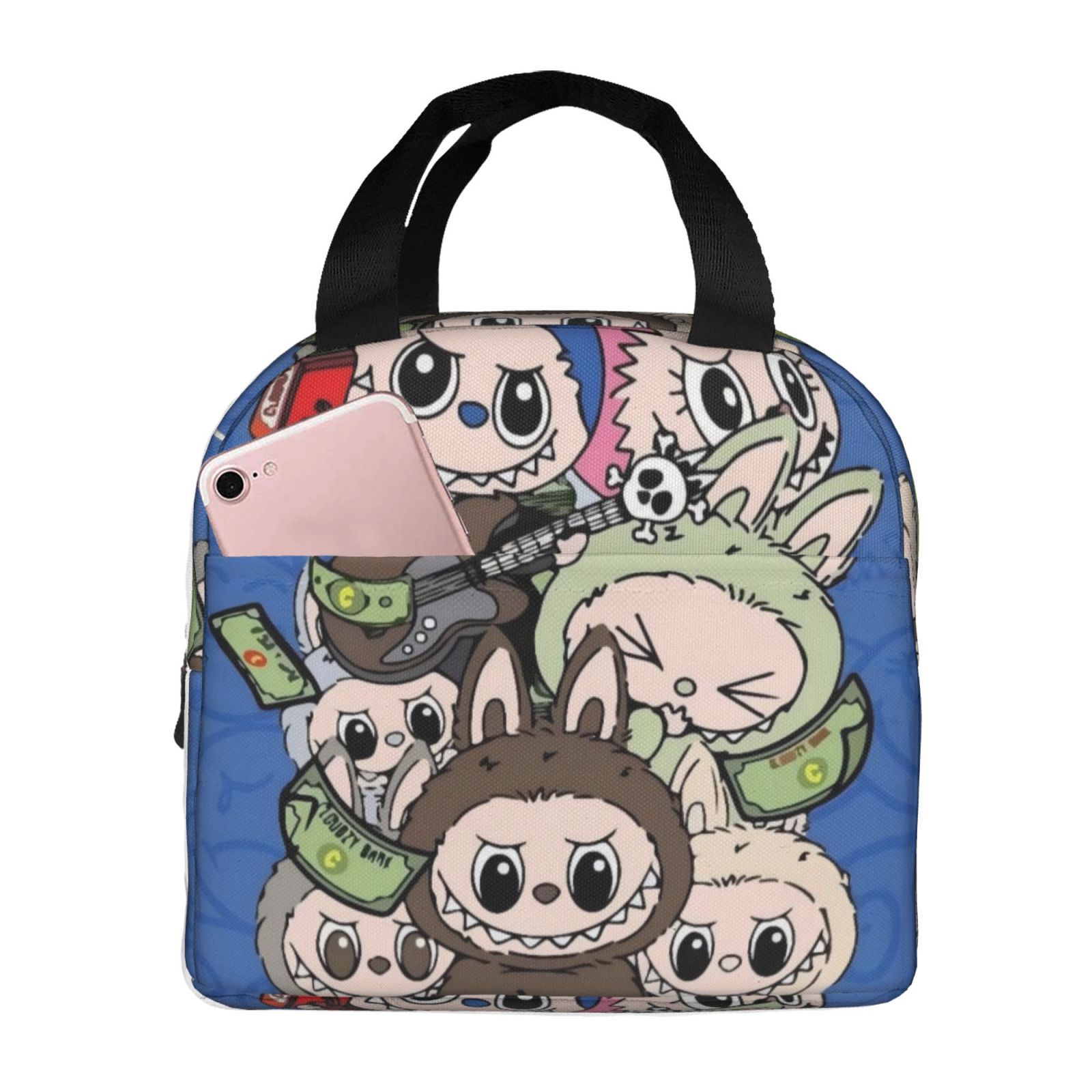 초등 및 중등 학생을위한 인기있는 labubu 피크닉 가방 점심 가방 만화 애니메이션 인쇄 절연 가방