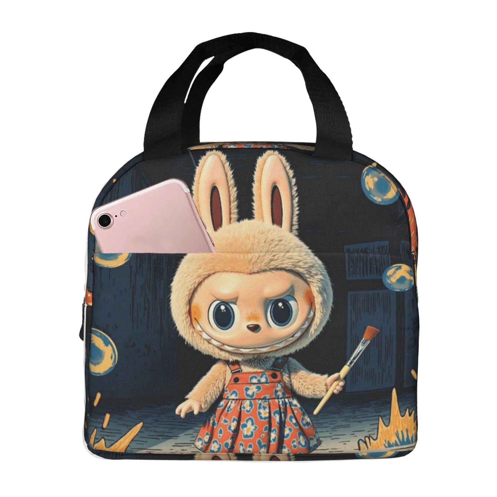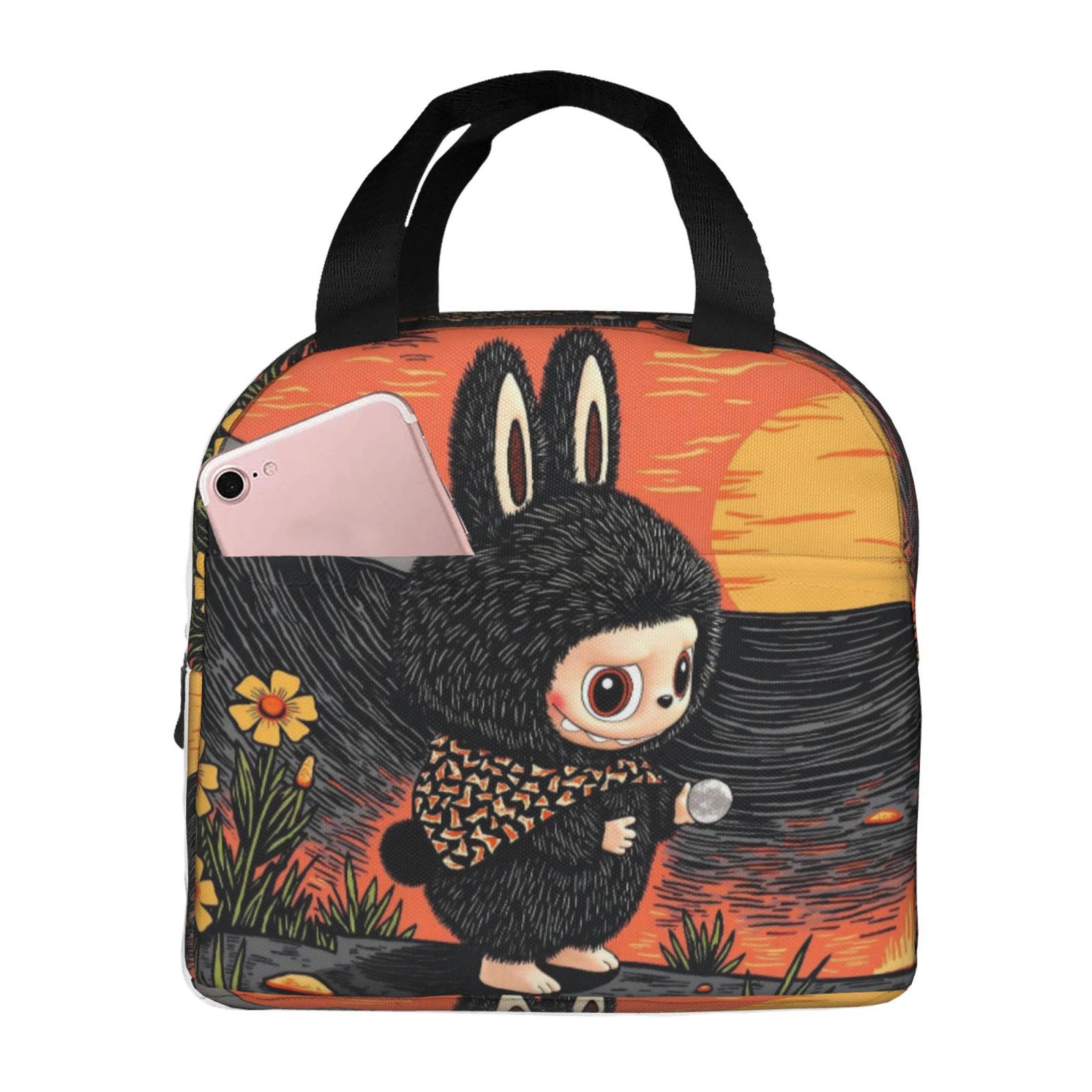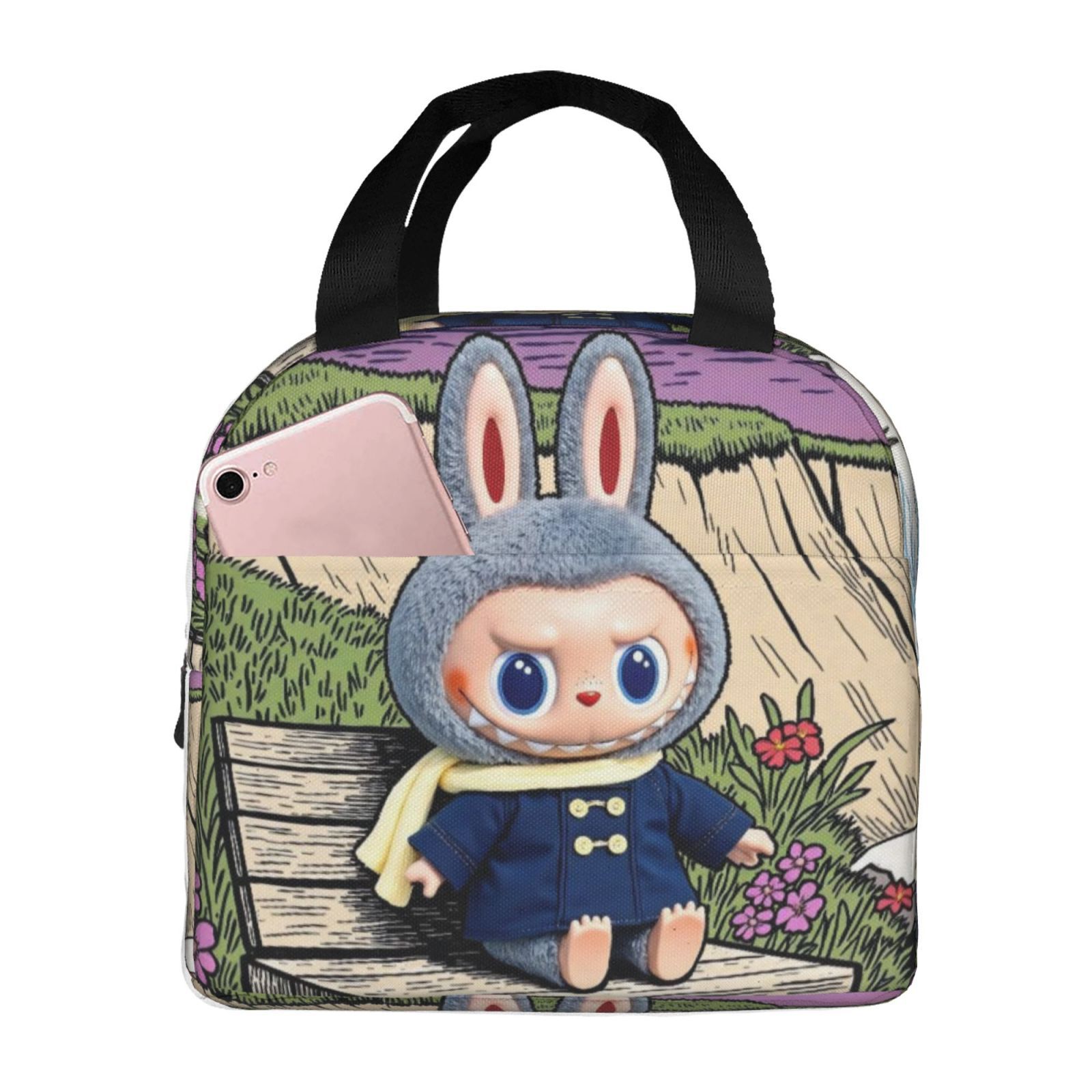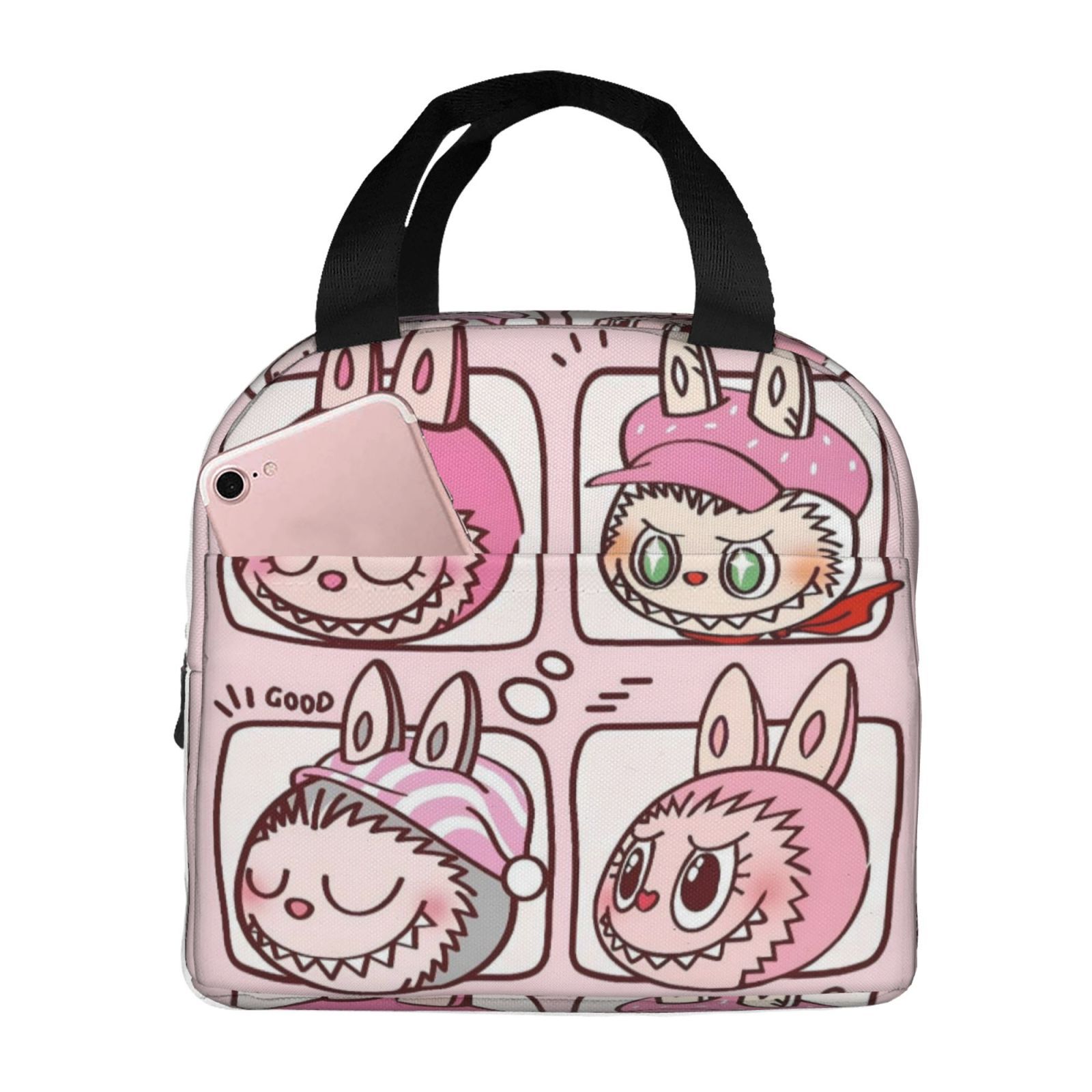 초등 및 중등 학생을위한 인기있는 labubu 피크닉 가방 점심 가방 만화 애니메이션 인쇄 절연 가방