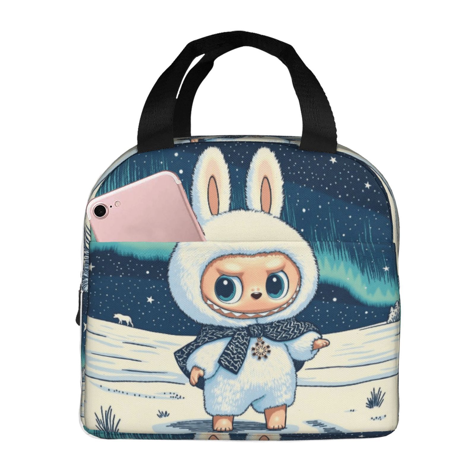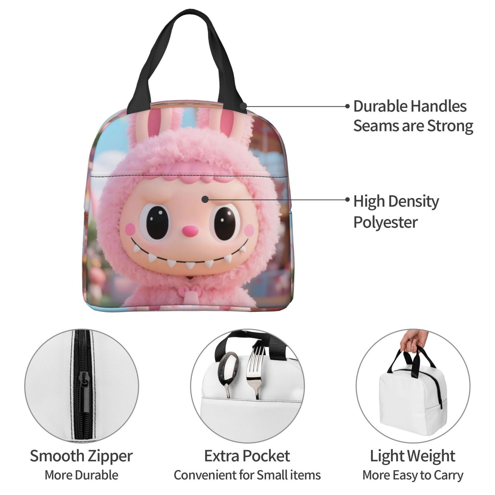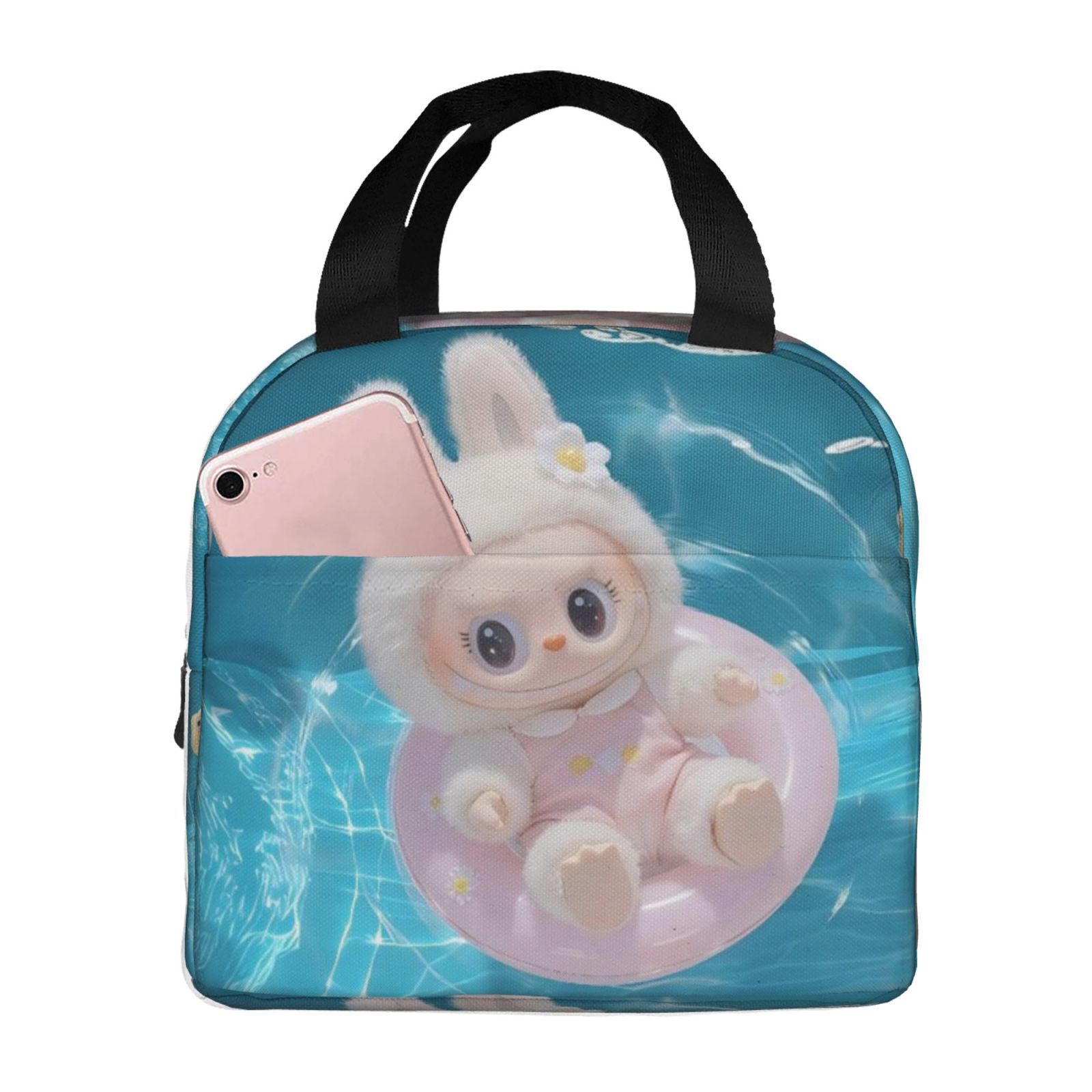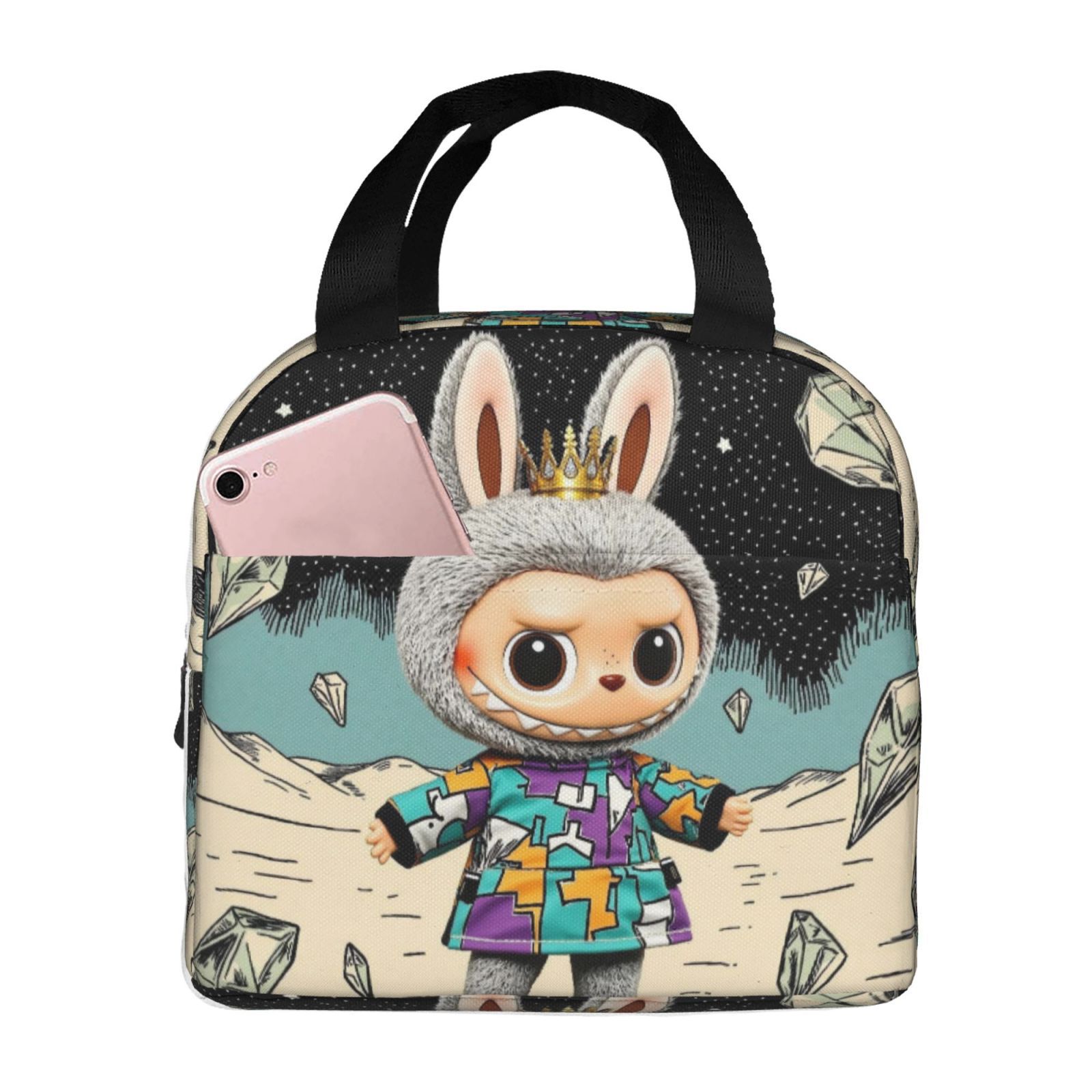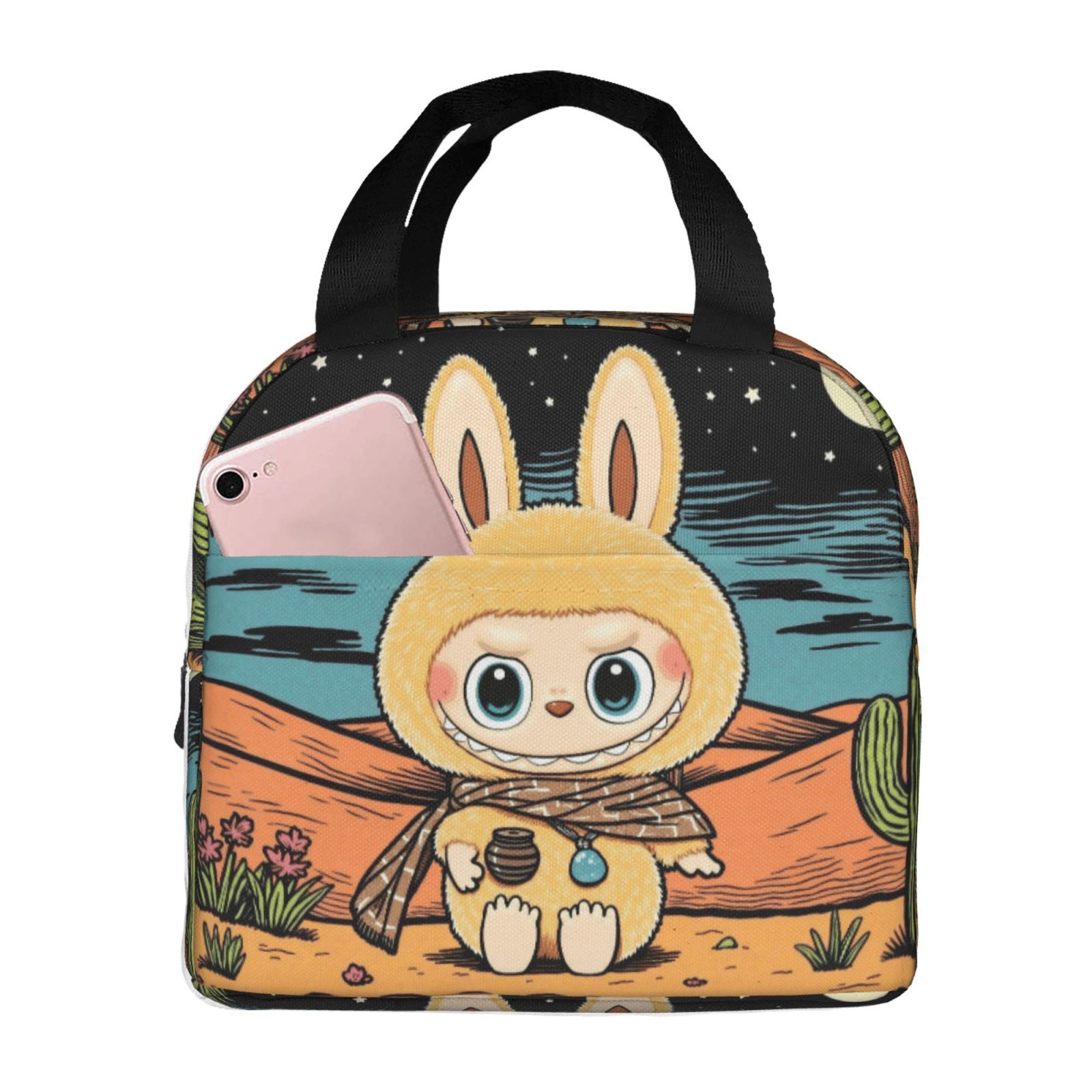 초등 및 중등 학생을위한 인기있는 labubu 피크닉 가방 점심 가방 만화 애니메이션 인쇄 절연 가방