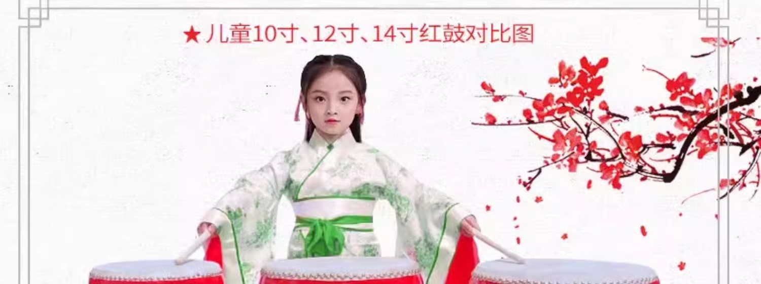 • 12inch 소가죽 드럼 40cm*23cm, 7-10세에게 적합, 드럼 스틱 + 3m 빨간색 실크 포함