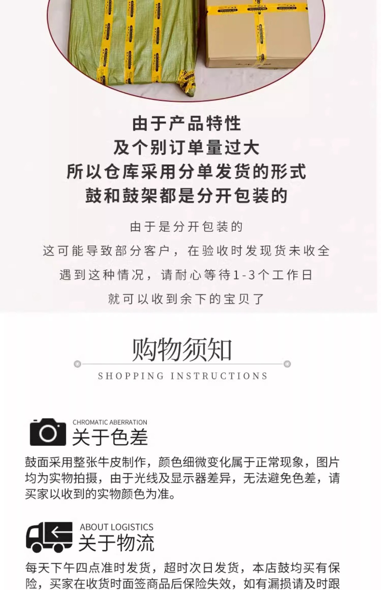 • 16inch 소가죽 드럼 52cm*25cm 성인에게 적합, 드럼 스틱 + 3m 빨간색 실크