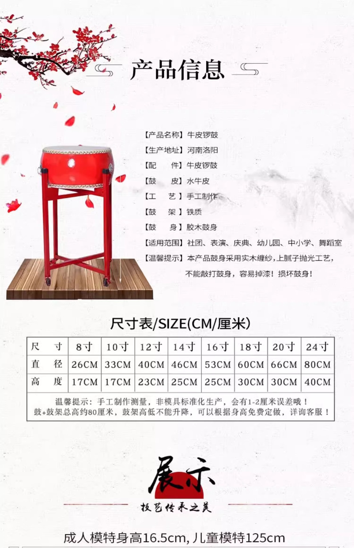 대형 드럼 소가죽 드럼 악기 중국 드럼 레드 드래곤 드럼 댄스 리듬 공연 드럼 어린이 플랫 드럼 장난감 탑 드럼스토어 가기