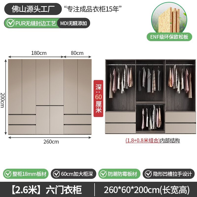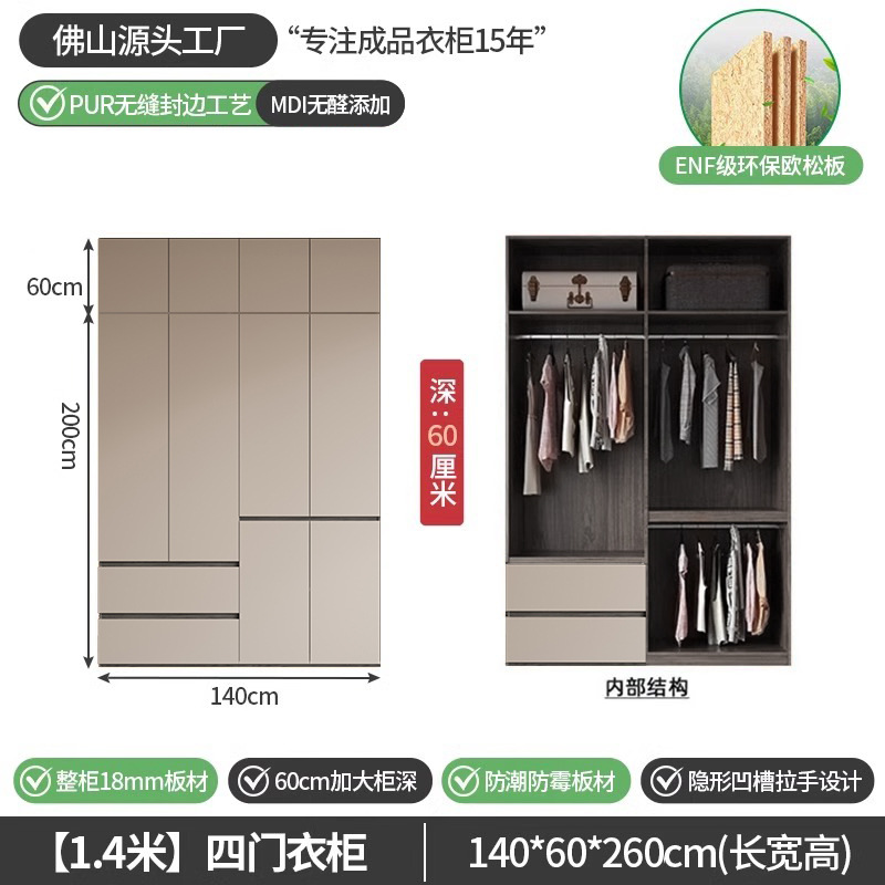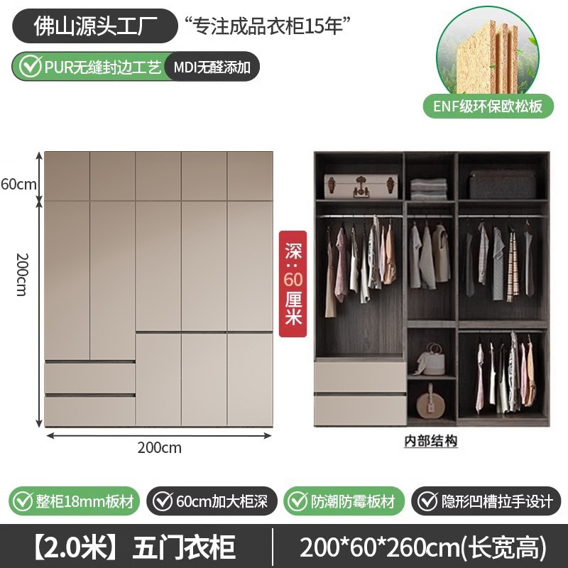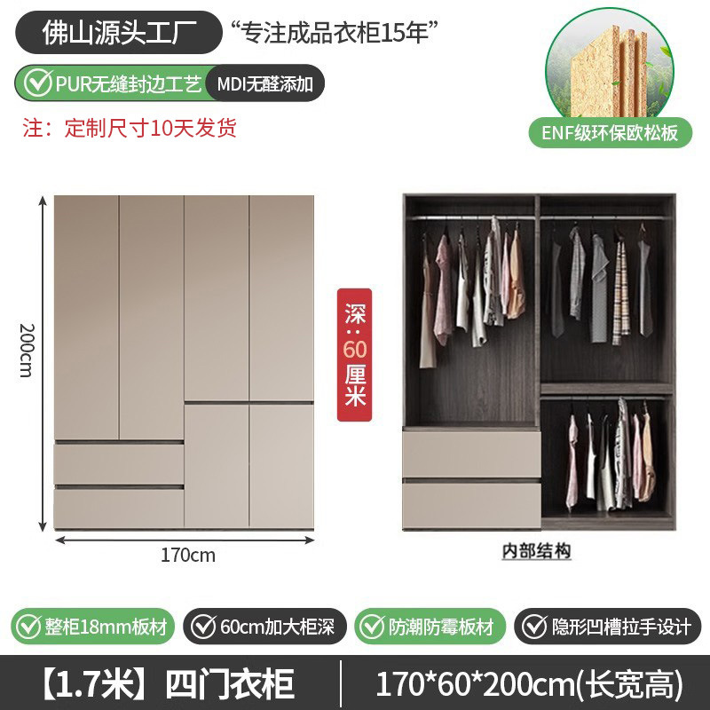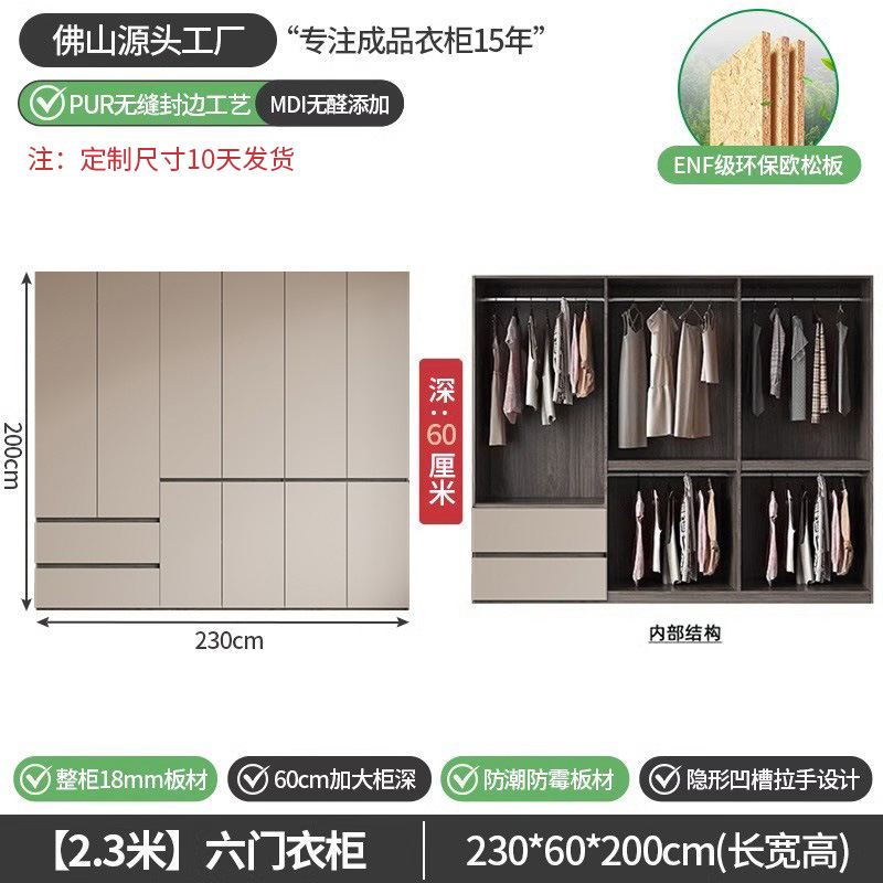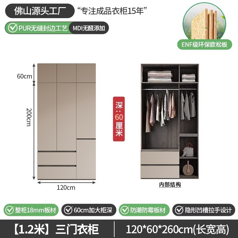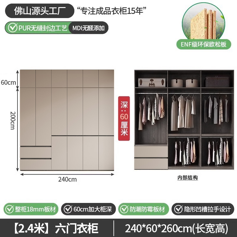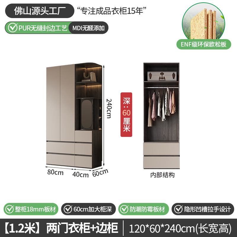 회색 ENF 등급 옷장 가정용 스윙 도어 간단한 현대 경제적 인 캐비닛 18m 두꺼운 유럽 소나무 판자 대형 옷장