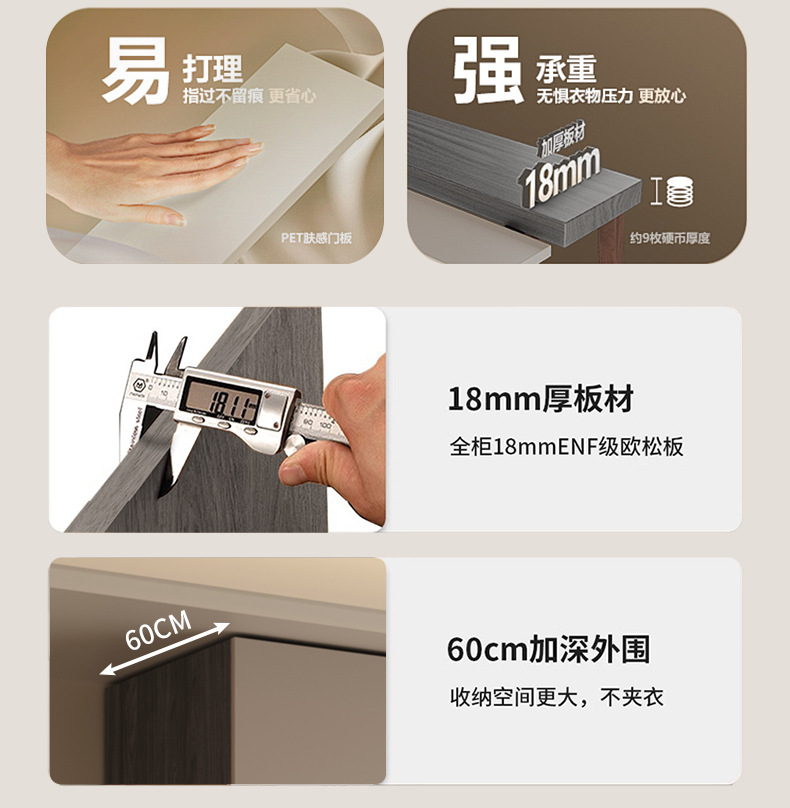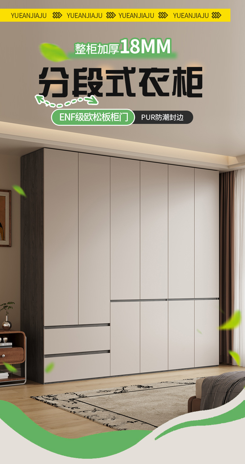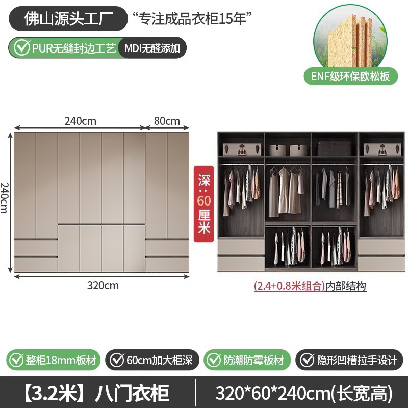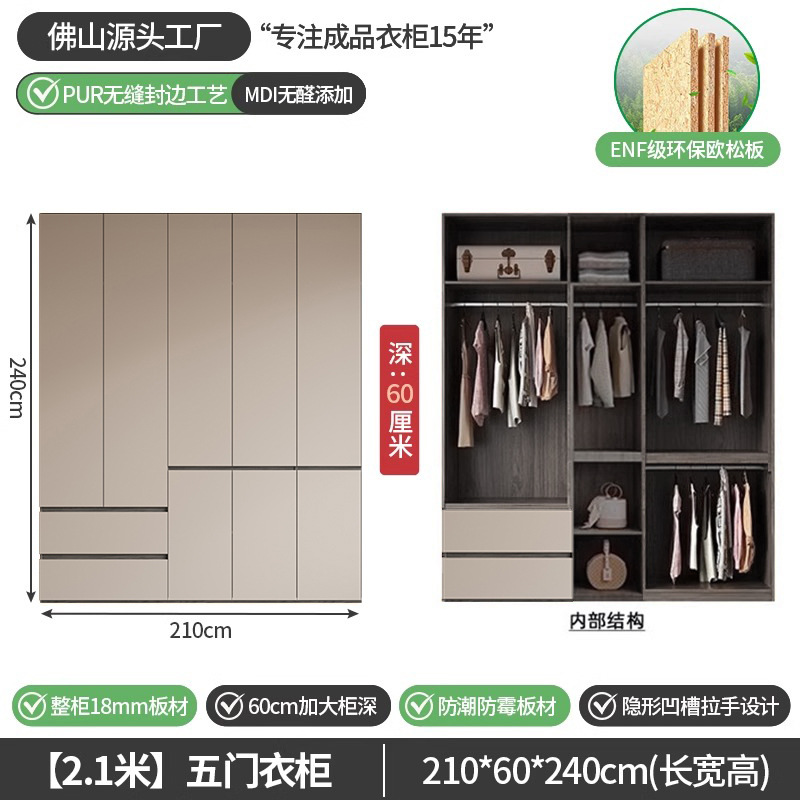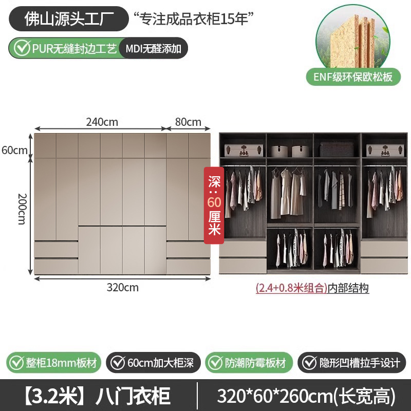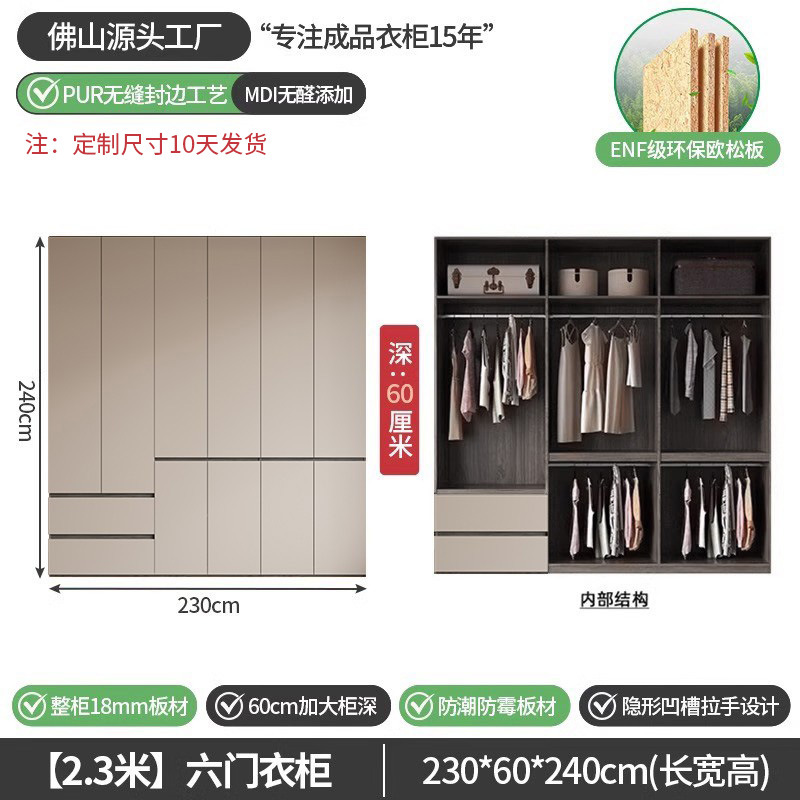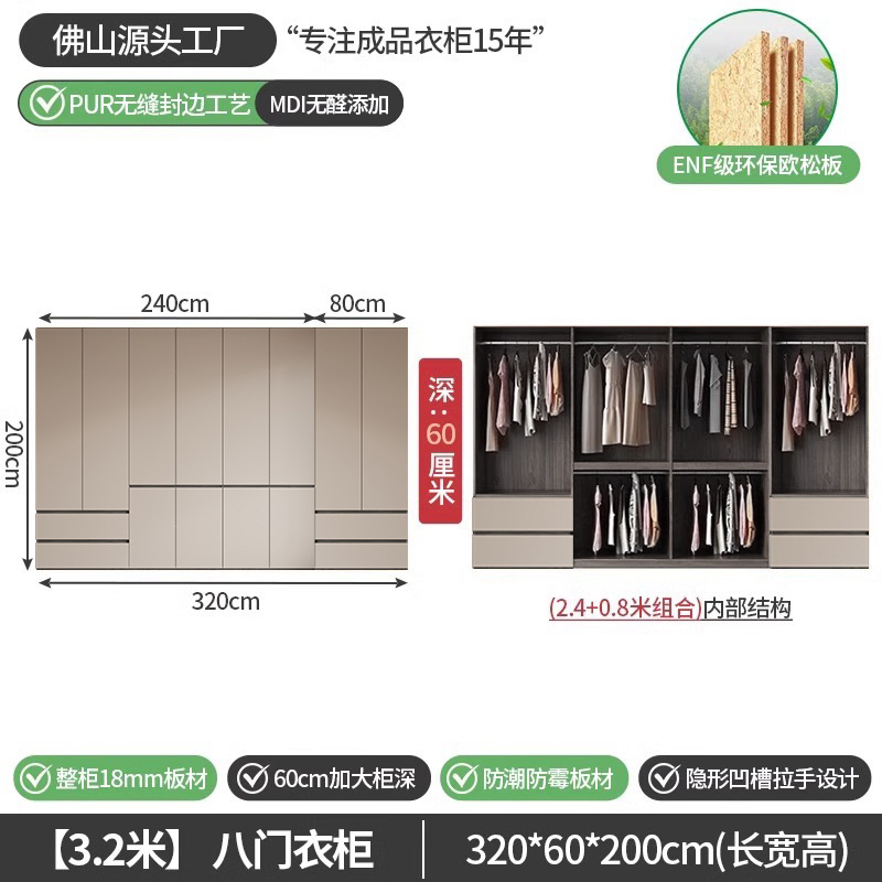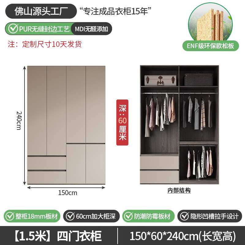 회색 ENF 등급 옷장 가정용 스윙 도어 간단한 현대 경제적 인 캐비닛 18m 두꺼운 유럽 소나무 판자 대형 옷장