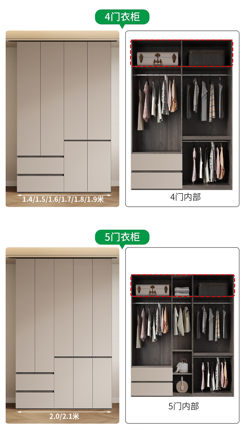 • 1.8m 도어 옷장 + 상단 캐비닛 [2.3/ 2.6m 높이]