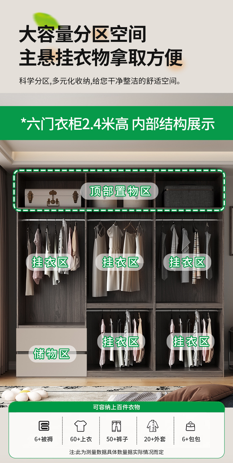 • 2.4m 6도어 옷장 [높이 2.0m ]