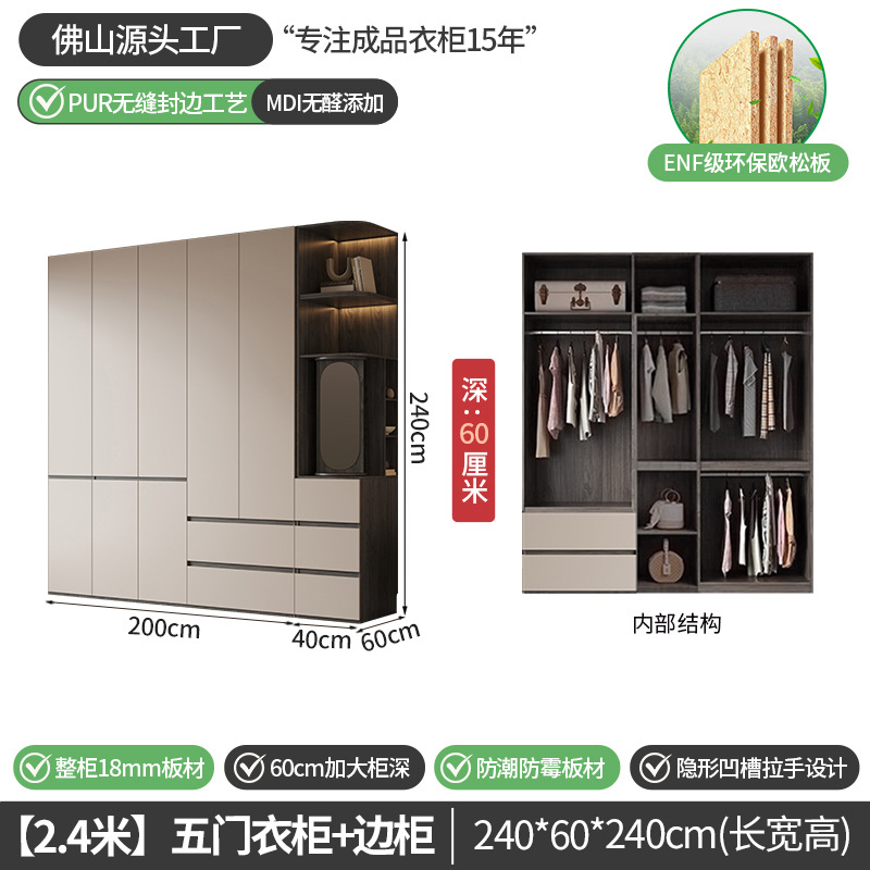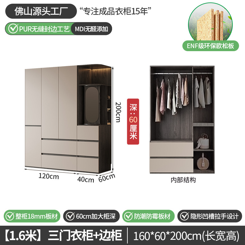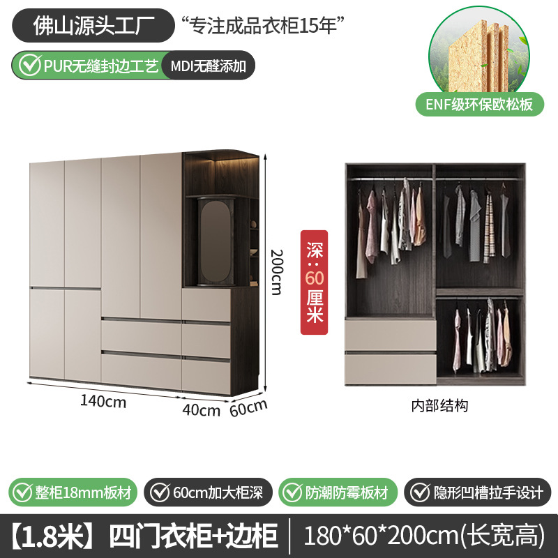 회색 ENF 등급 옷장 가정용 스윙 도어 간단한 현대 경제적 인 캐비닛 18m 두꺼운 유럽 소나무 판자 대형 옷장스토어 가기