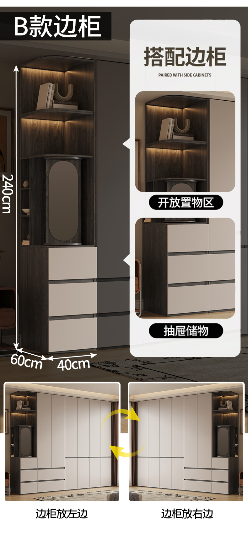 • 1.5m 도어 옷장 + 사이드 캐비닛 [ 2.4m 높이]